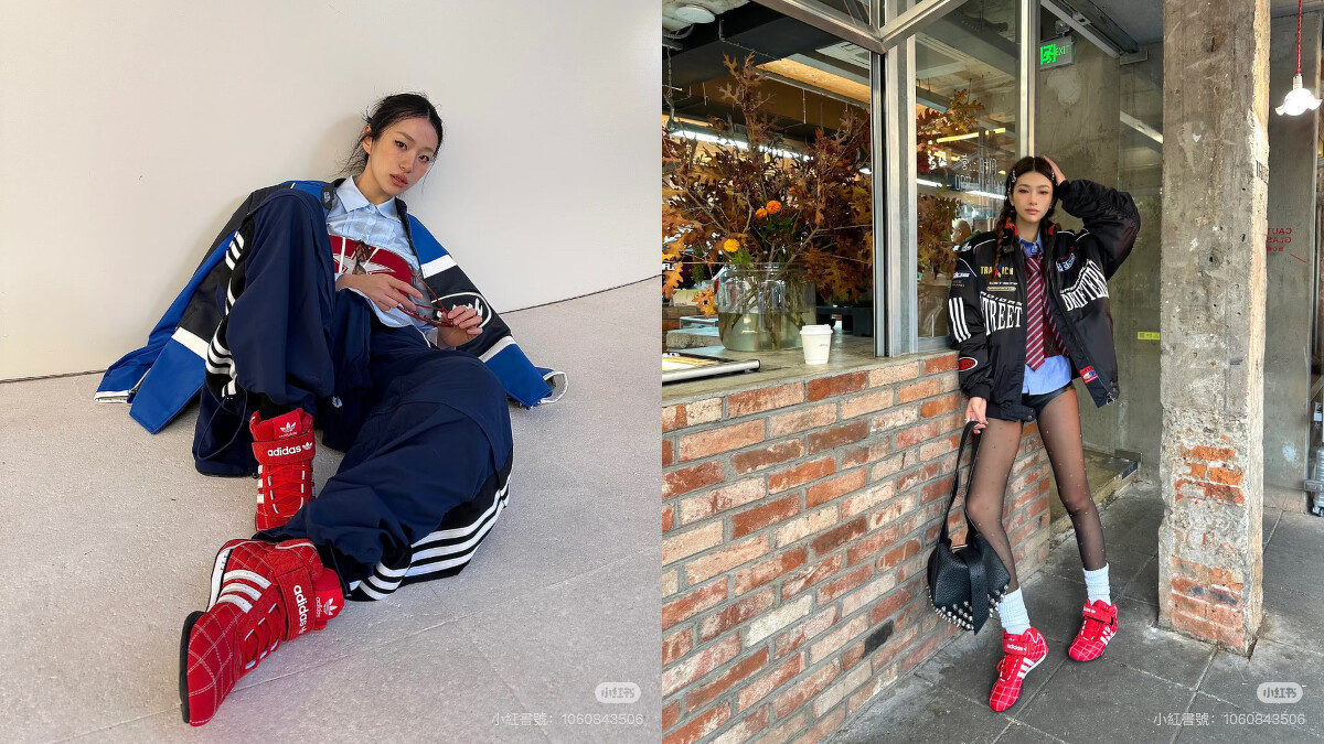 Jennie在MV〈Extral〉裡穿著白色西裝配上adidas 「adi racer」紅色經典款,這樣巧妙的組合融合了優雅與運動風, Adi Racer的搭配打破正裝的嚴肅感,賽車鞋的流線設計與低筒剪裁則為這身造型注入了活潑動感與現代氛圍。