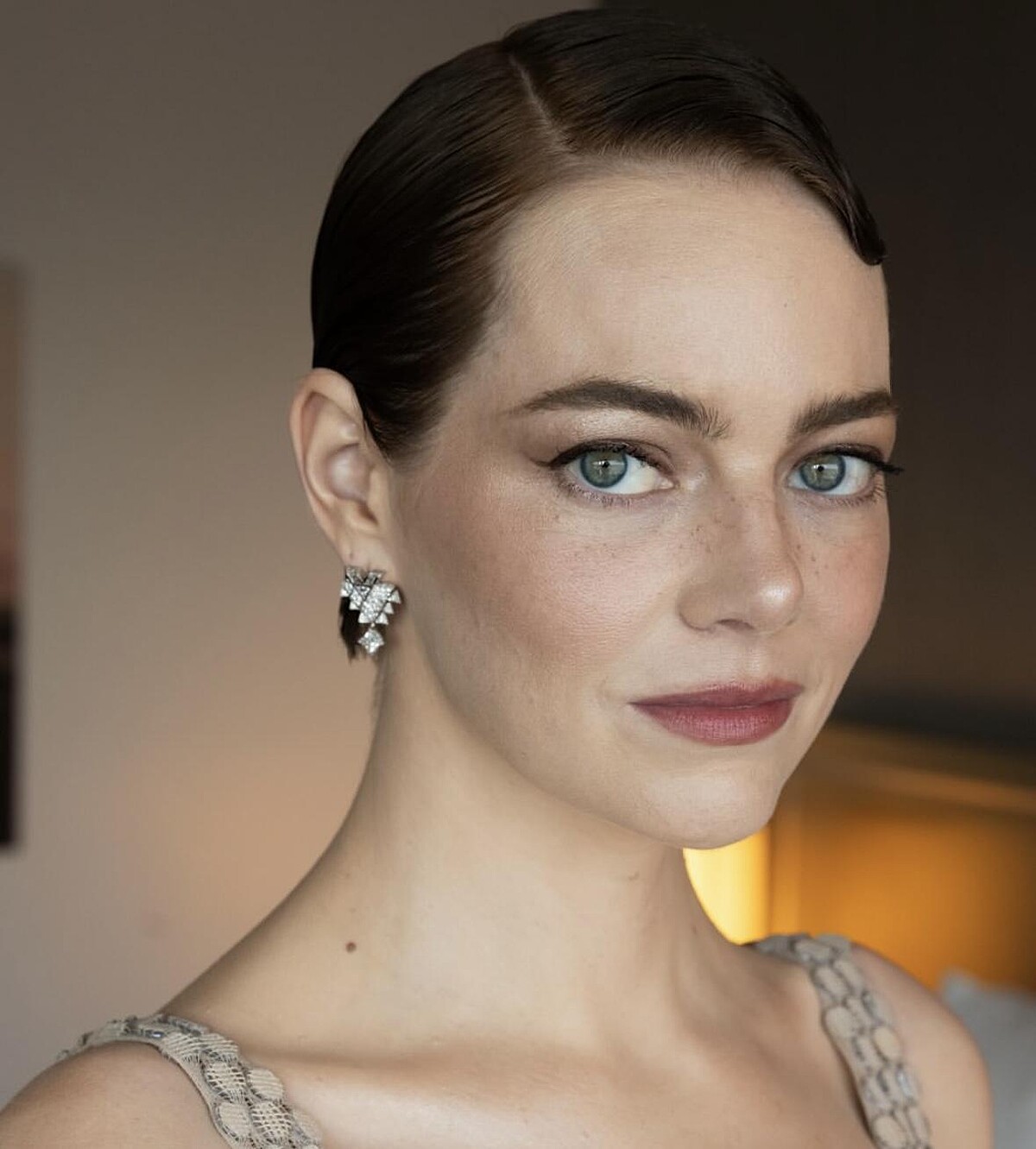 去年奧斯卡影后艾瑪•史東Emma Stone今年以頒獎人身分出席典禮,她的古典造型同樣美翻眾人。Louis Vuitton鑽石耳環與戒指鑲嵌有星形切割鑽石,簡約中不失細節,搭配同品牌訂製刺繡水鑽裝飾禮服,溫柔婉約。