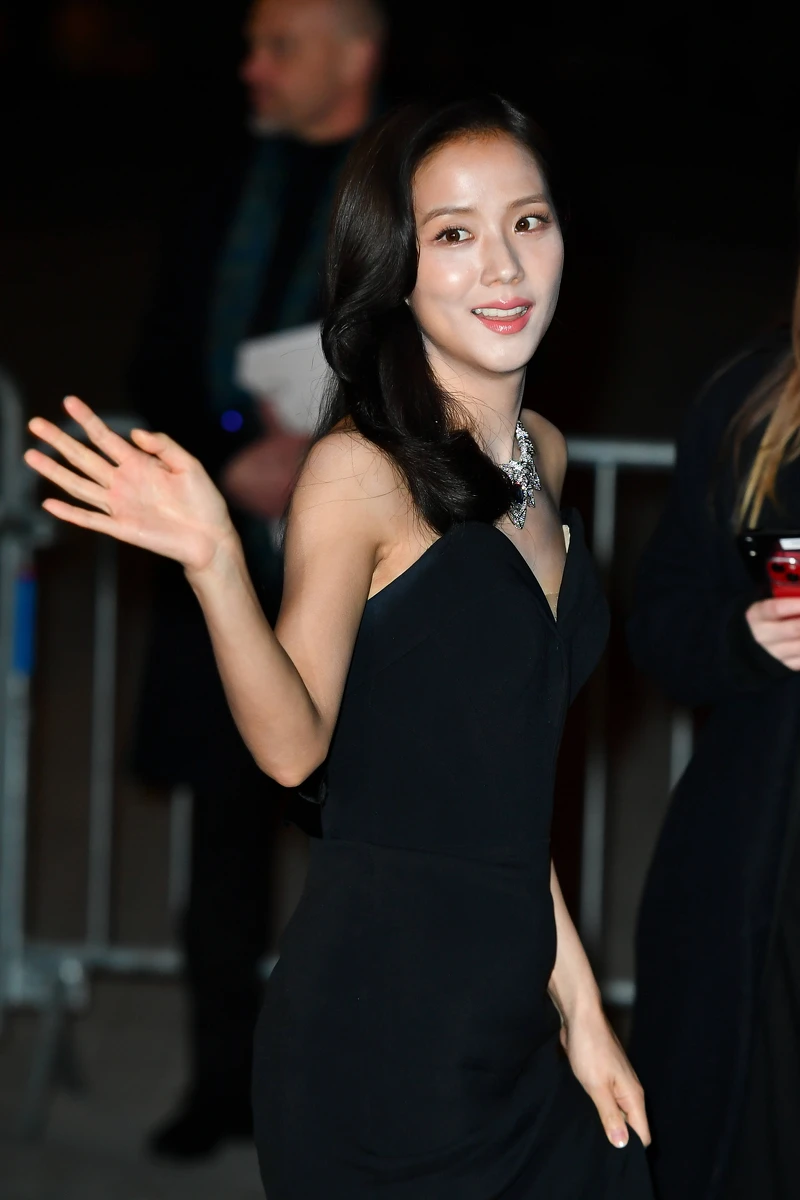「Dior 小公主」Jisoo當天在出席完Dior 2025秋冬大秀之後,晚間忙碌換裝現身羅浮宮晚宴,她穿著Dior黑色魚尾禮服,佩戴Cartier 全新的Panthère Canopée 高級珠寶系列,優雅的魚尾裙襬讓Jisoo的身段被完美襯托。