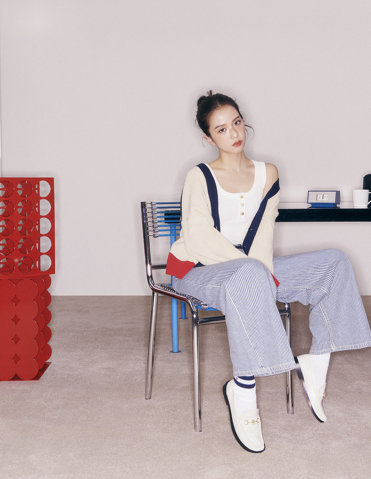 JISOO 不僅是當代韓流的標誌性人物,也受到年輕世代的喜愛,藉由此次合作更表現了融合優雅與活力的學院街頭風格,一身充滿活力且精緻的時髦海軍藍單品,更將他獨特且充滿魅力的氣質完美展現,