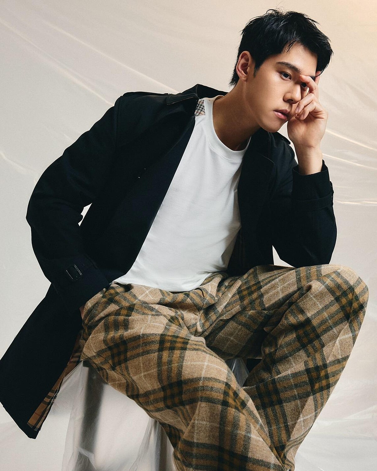 除了女生的穿搭參考,歌手周予天也穿上深色經典風衣作為造型主軸,內搭白色上衣,下身則穿上有著濃厚英倫風格的格紋寬褲,不同於傳統合身的英倫造型,寬鬆輪廓更符合現代趨勢。