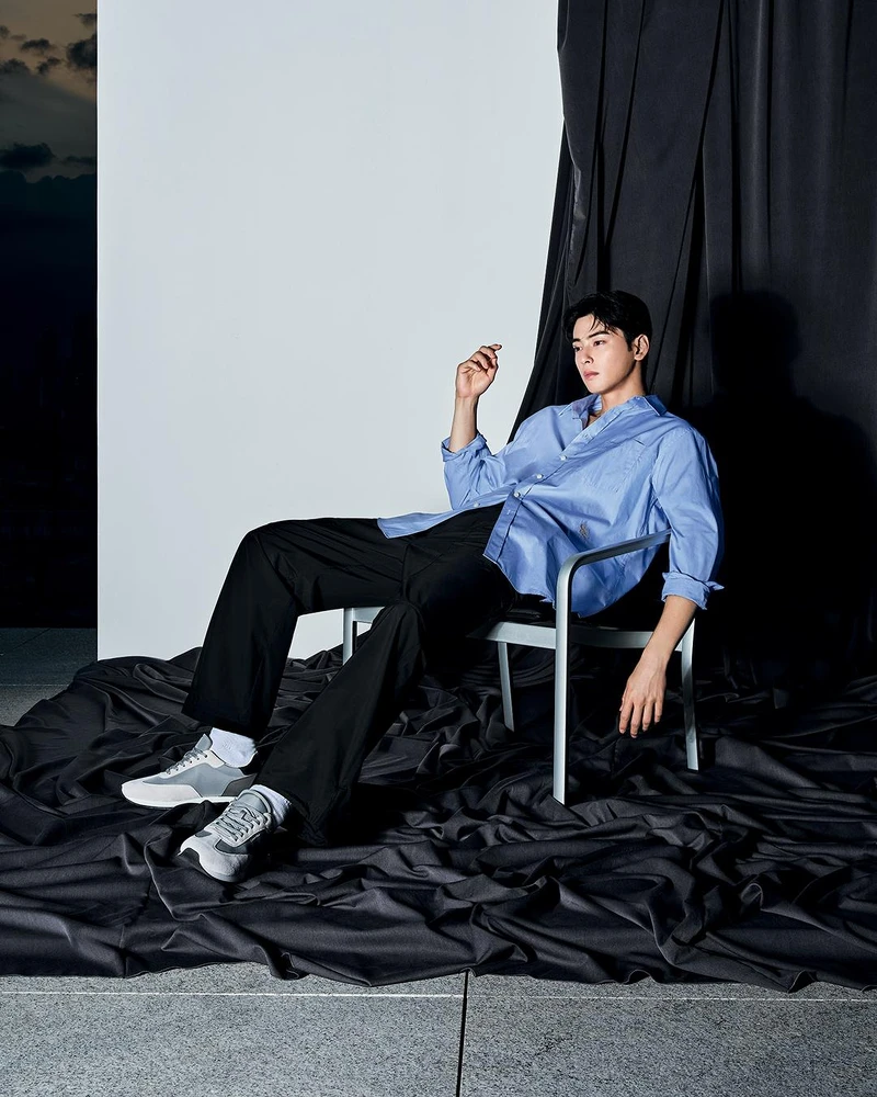 除此之外,不妨也參考車銀優選用微寬鬆剪裁的襯衫作為造型主軸,以帶有慵懶感的鬆弛風格展現無拘無束的率性,鞋款可以選擇一雙時髦球鞋搭配,自在不刻意,俐落又帥氣。