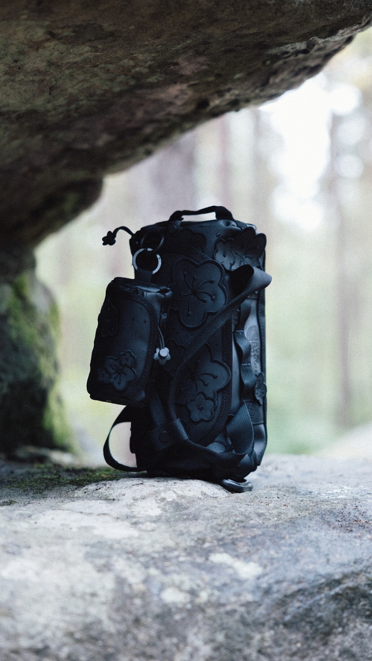 這款戶外包以耐用、防潑水的材質打造,包身上搭配3D立體花飾與小花造型拉繩裝飾,寬敞的內部空間與分層設計,並配有防水證件夾層,輕鬆滿足日常通勤或戶外活動的需求。