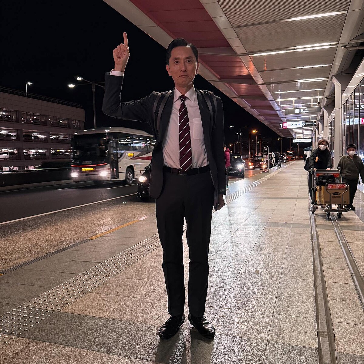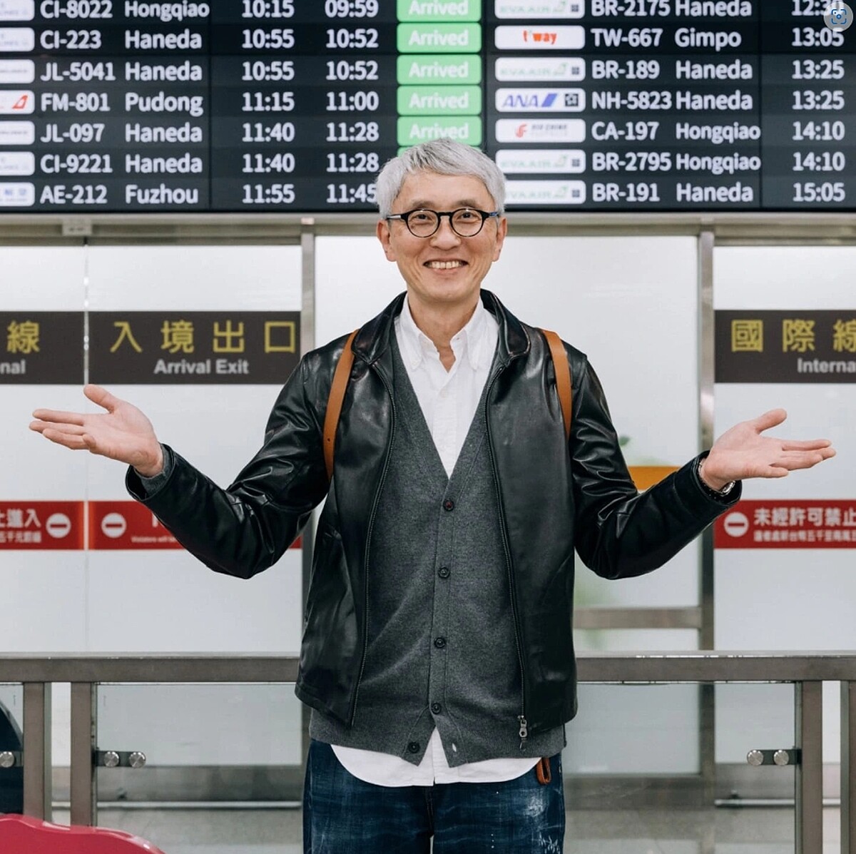 松重豐本次來台行程緊湊,宣傳行程之外,他還體驗了擔仔麵、老舊家鄉味酸菜白肉鍋……短短時間內暴風進食,看他吃東西真的太療癒了!抵達台灣時,松重豐以皮衣造型內搭針織衫與襯衫,層次搭配不馬虎,舒適又有型;離開台灣時他也是穿著同一件皮衣外套,作為他的搭機裝扮,能抵禦機上冷氣又能保持時髦態度。