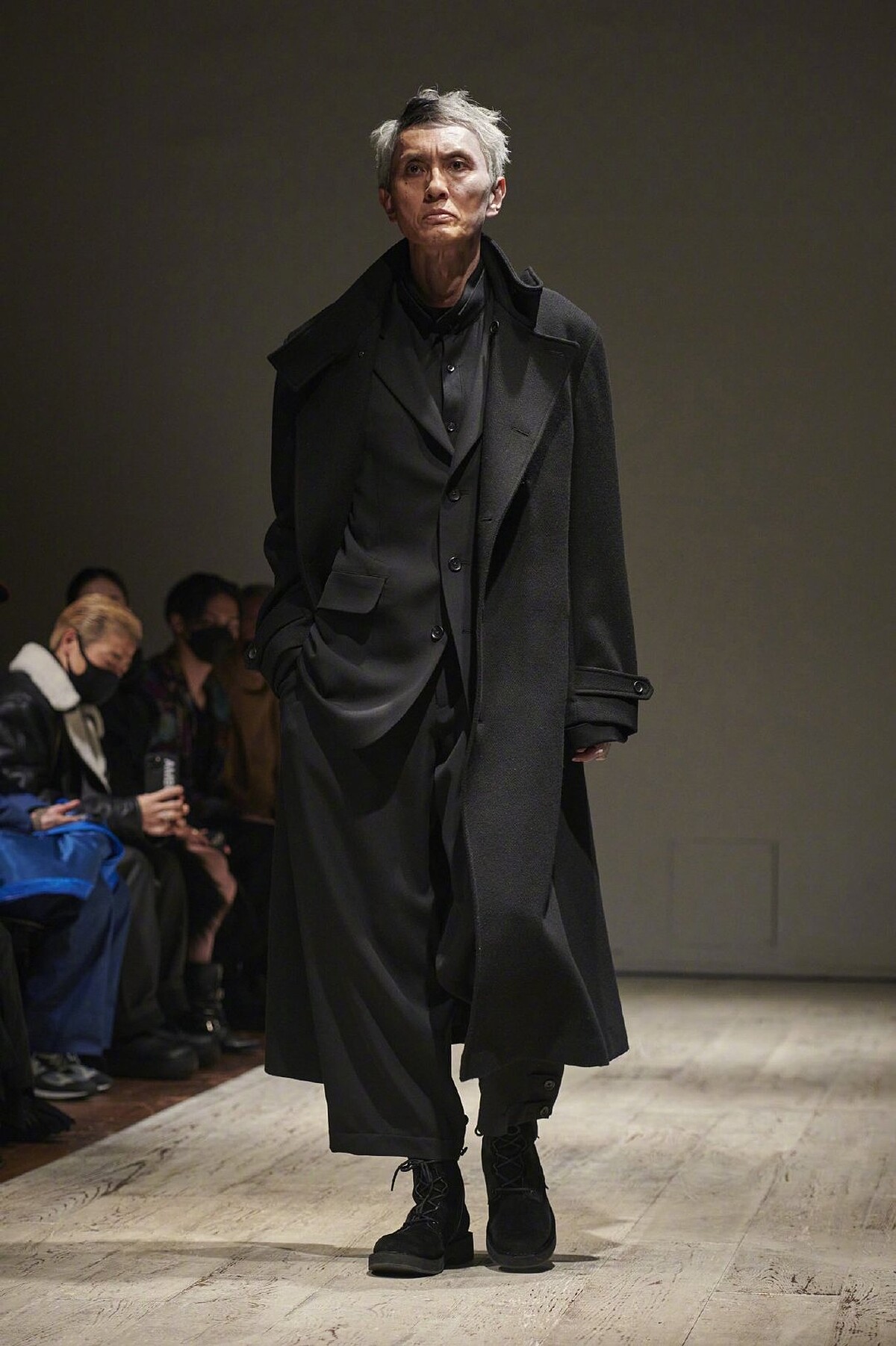 松重豐不只有當模特兒的資質,他也真的走上過伸展台!山本耀司Yohji Yamamoto 2022秋季男裝系列邀請5位日本銀髮演員來擔任模特兒,松重豐便是其中一位,穿上前衛設計的黑色裝束,架式確實不凡!