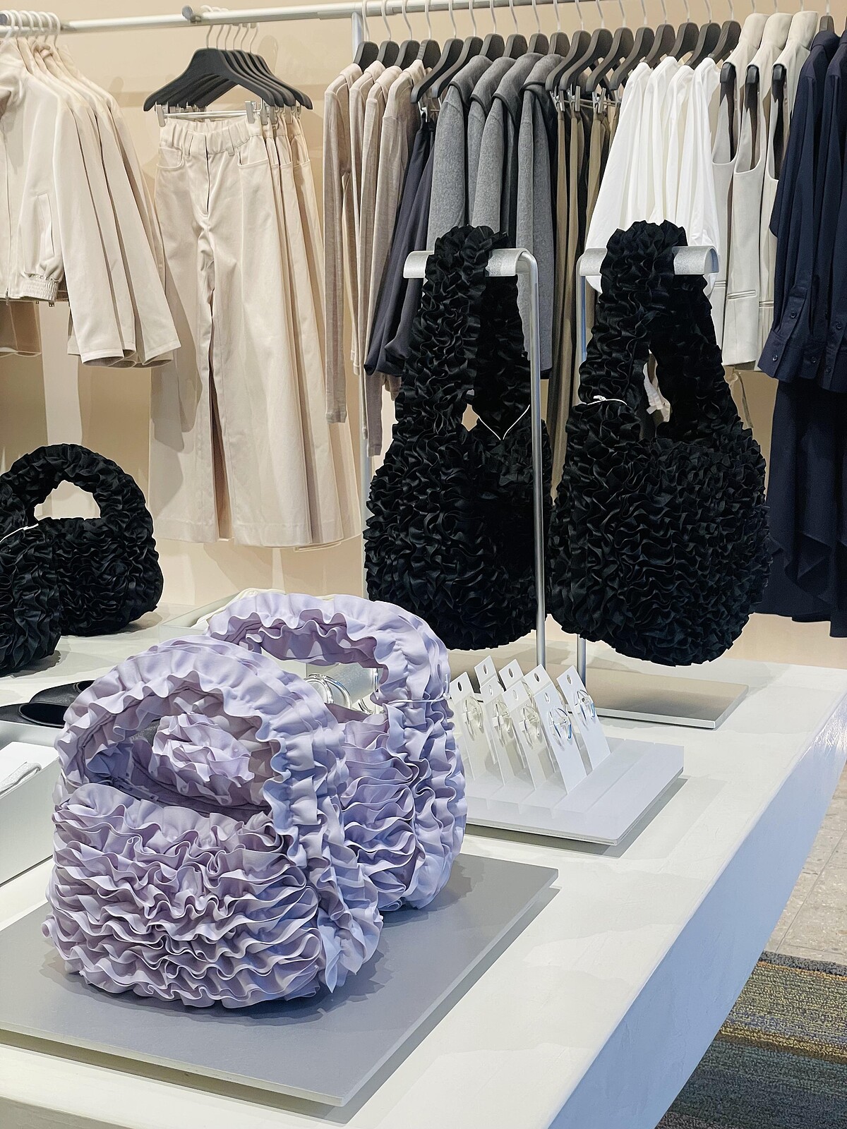 從原先雲朵包的輪廓下手,本季把表面鋪滿了層層疊疊的花邊,就像繡球花一樣毫無空隙的綻放,華麗氛圍直線上升,比起雲朵包給人更為優雅、具有女人味的氣韻,但同時依然保有圓潤可愛的外型,目前有黑色以及丁香紫色,並提供中、小尺寸,相信未來還會有更多選擇推出!