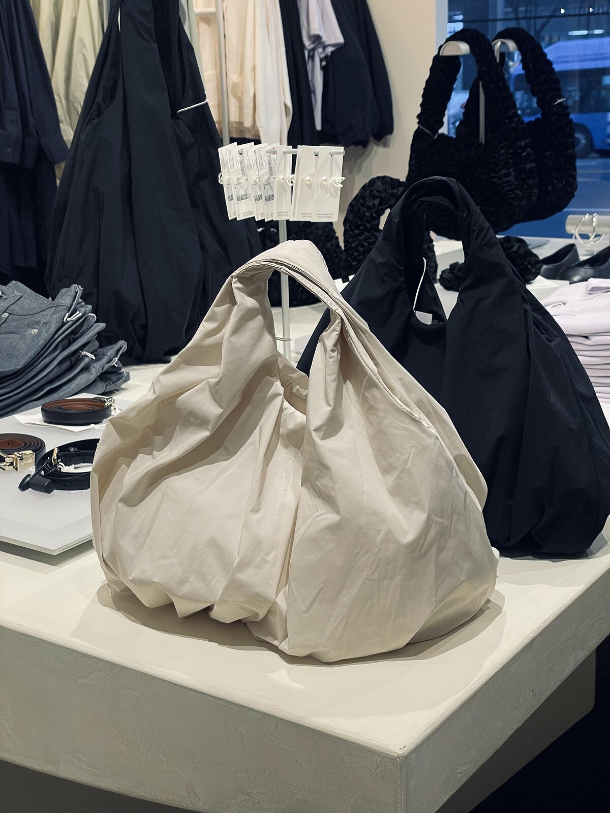 同樣以雲朵般輕柔的意象為靈感,COS推出一款新的雲朵托特包,少了絎縫紋路,改以隨性的皺摺設計,凸顯的是軟爛、慵懶的鬆弛感,素雅簡約的面貌頗有大牌風範,背起來特別顯品味,有網友還給此款包起了「小籠包」的可愛暱稱。