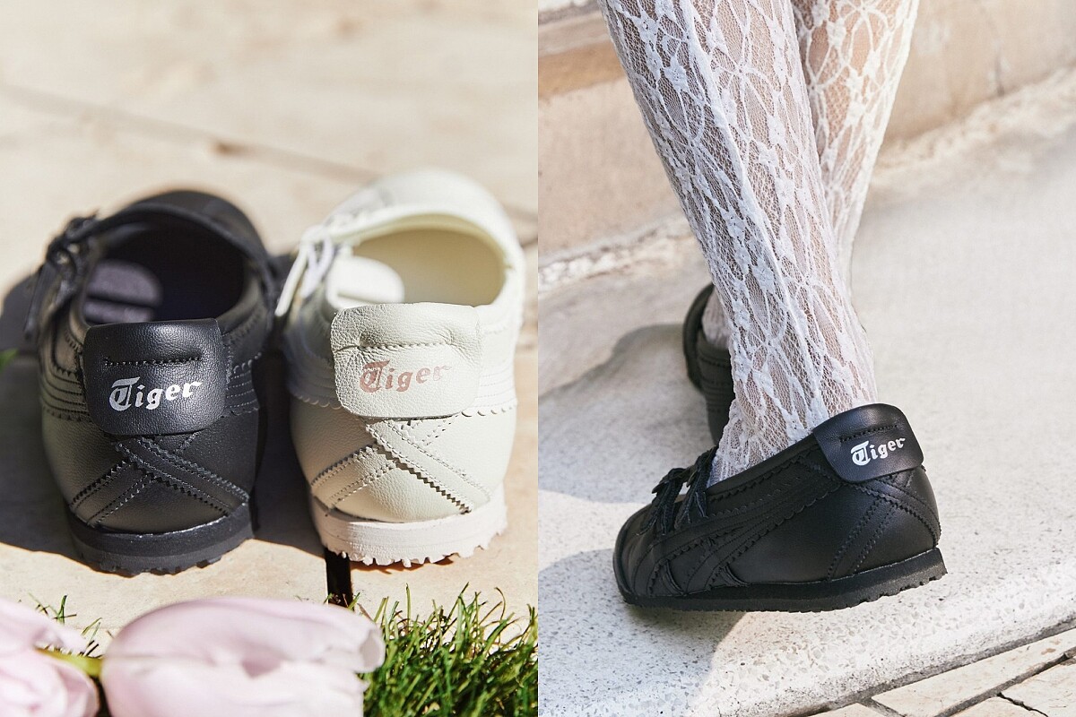 透過品牌發佈的照片我們可以看到,Onitsuka Tiger鬼塚虎推出的鞋款「MEXICO 66 TGRS」,是一雙結合復古運動鞋身以及瑪莉珍繫帶的全新設計,除了雙繫帶的設計之外,在鞋身、繫帶處以及經典的虎爪紋標誌都搭配上皮革蕾絲滾邊的設計,這樣的鞋型在鬼塚虎早先與法國設計師品牌PATOU的聯名中MEXICO 66 Ballerina鞋款就能看到。