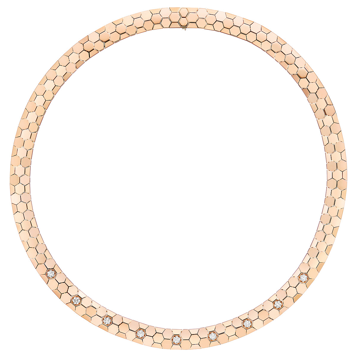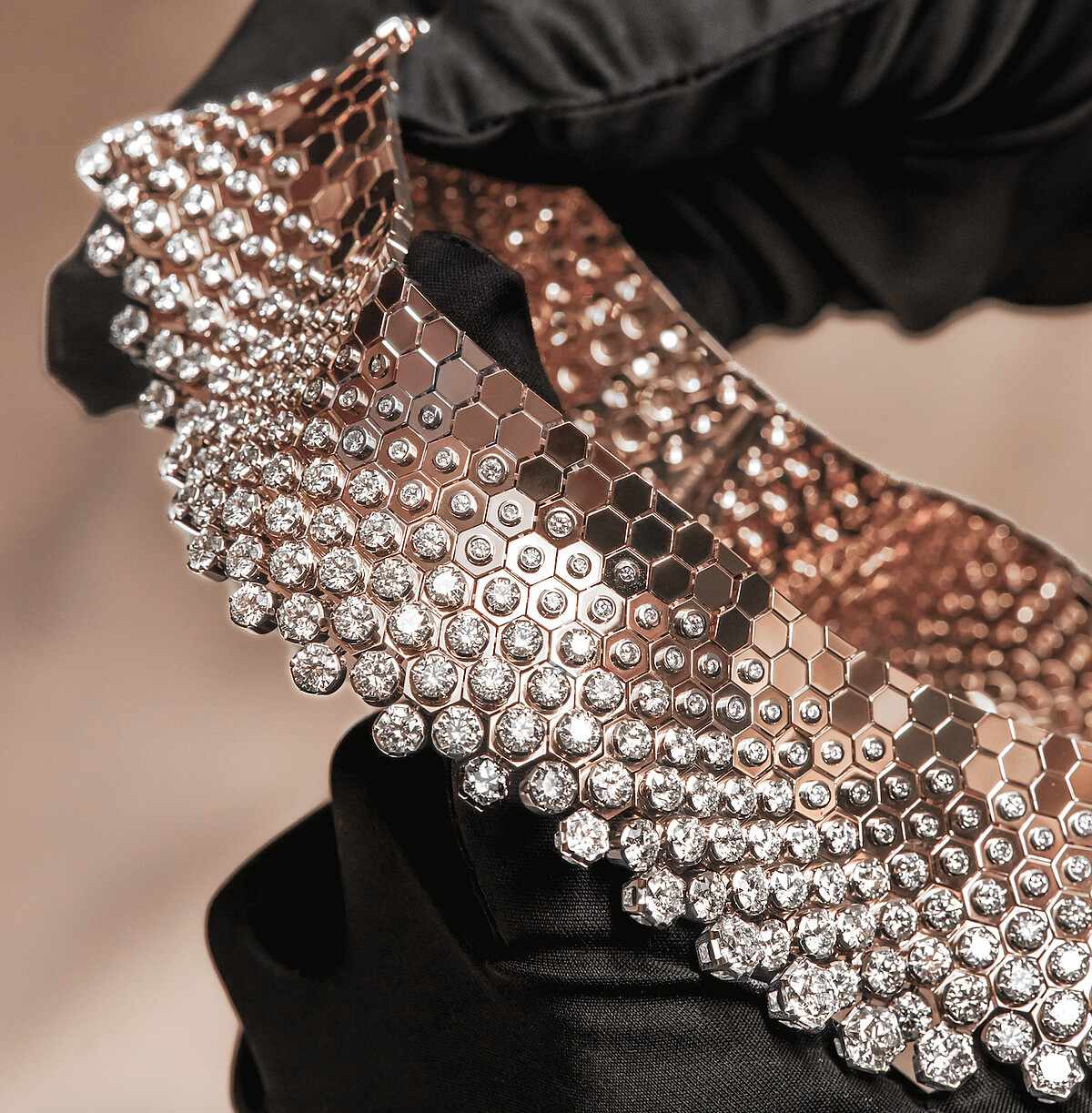 蜜蜂蜂巢也啟發Chaumet 獨創六角形切割工藝,以88 個手工切面捕捉、層層折射光線,並自2024年起推出「可完全溯源鑽石」,從原石到琢磨成型的歷程皆透明化,體現對於永續議題的重視與承諾。