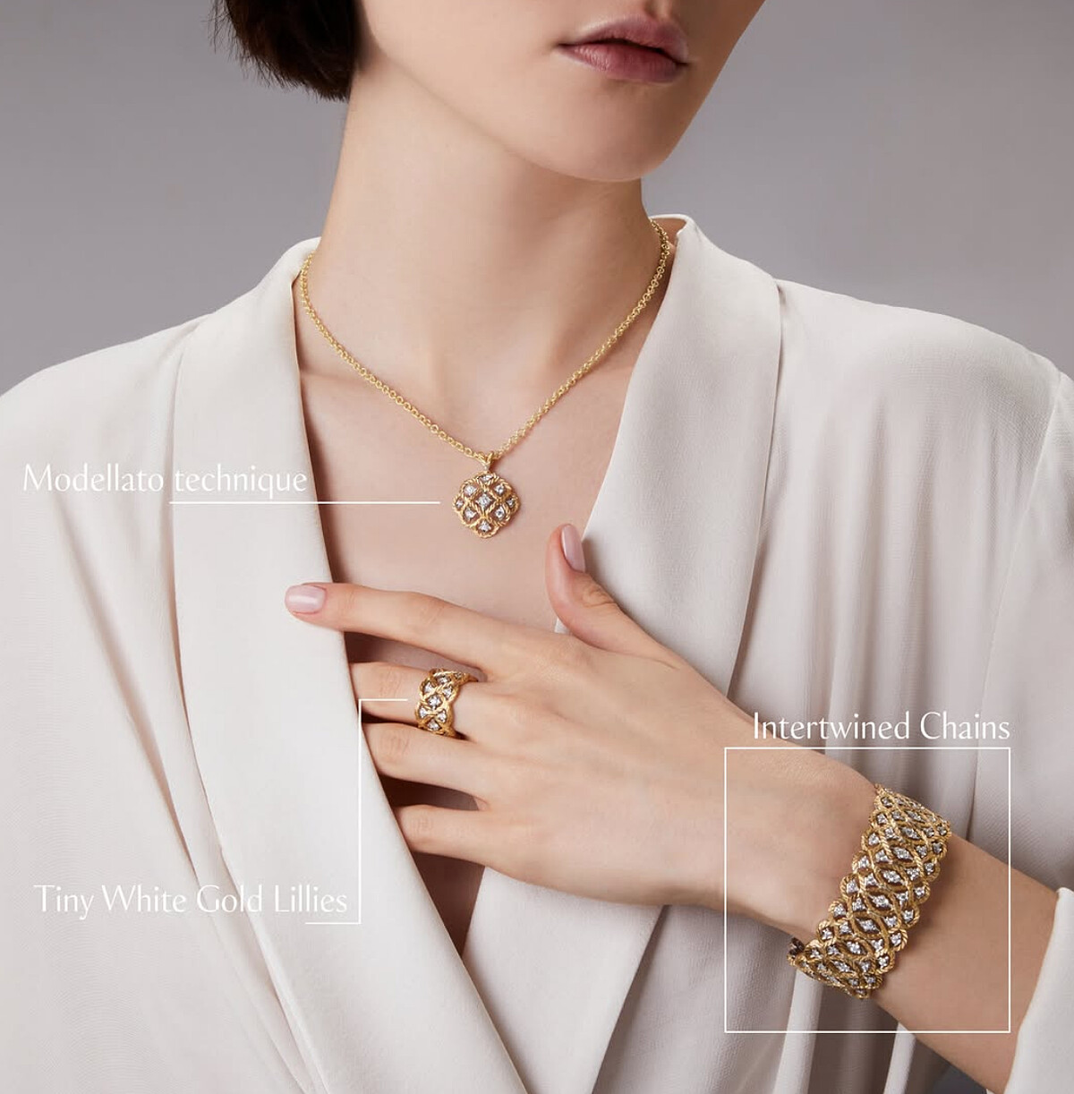 來自義大利米蘭的布契拉提Buccellati創立於1919年,品牌美學汲取中世紀與文藝復興時期風格靈感,以細膩精緻的金質手工雕刻工藝搭配各種出色彩寶來呈現,雕刻技術更可追溯至義大利文藝復興時期,獨樹一格的古典氣息讓人印象深刻。品牌隸屬於Richemont歷峯集團,由Buccellati家族第三、四代共同執掌管理與設計走向。