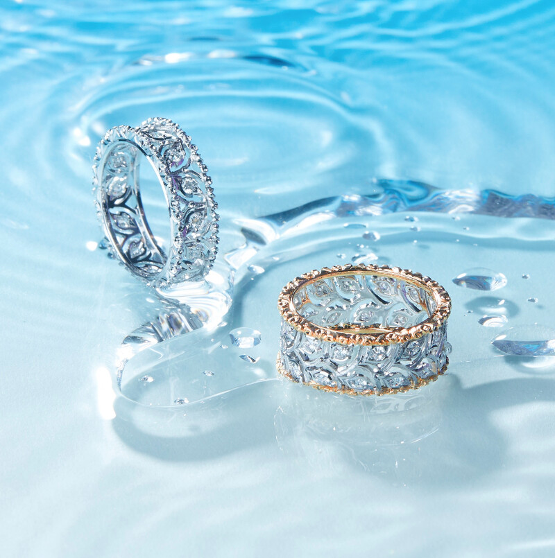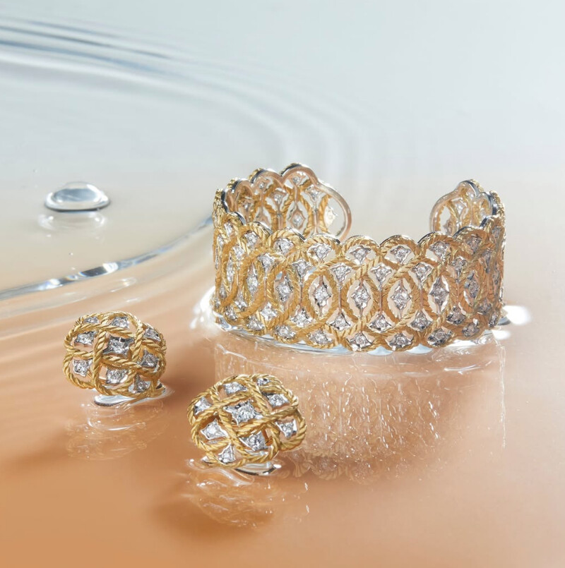 推薦原因:乘載品牌經典工藝“Rigato”——在金質表面以手工處理紋理和鑲嵌鑽石,呈現出如打造出絲綢般低調而閃耀的作品,具品牌工藝代表性。