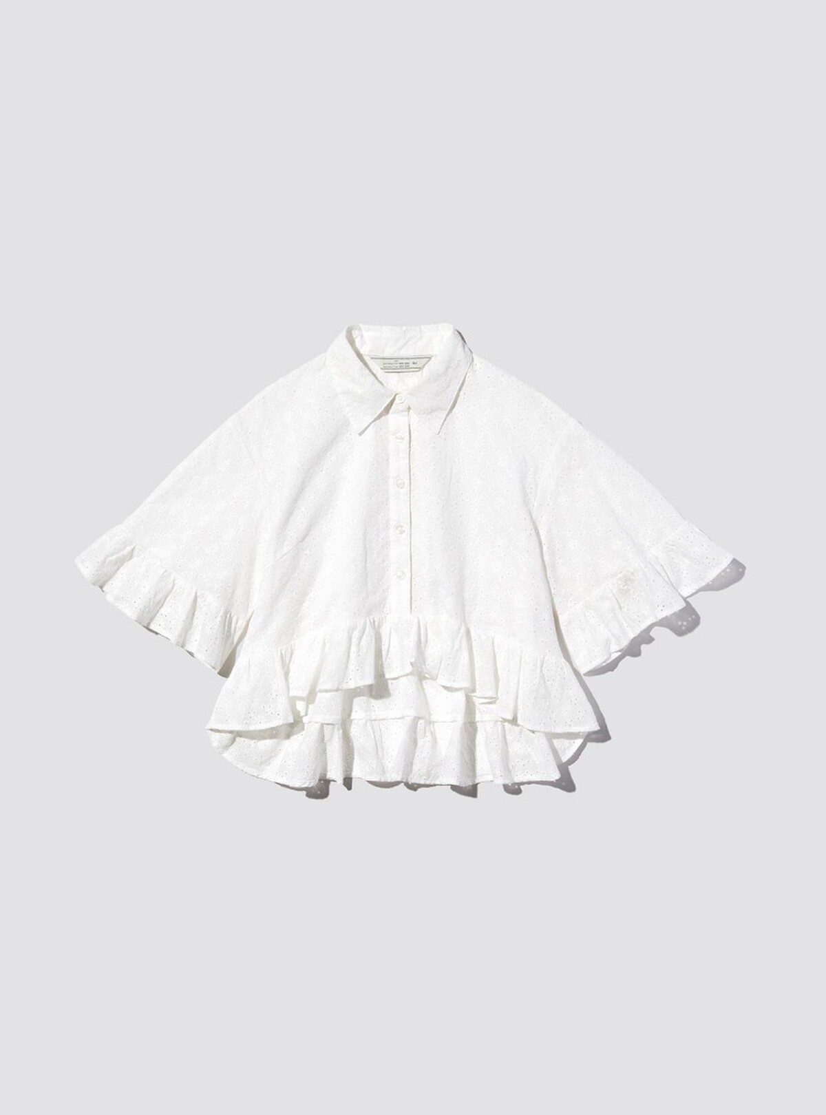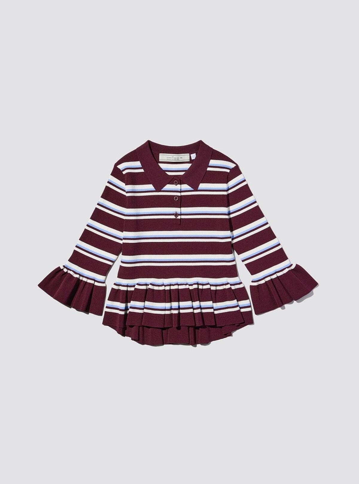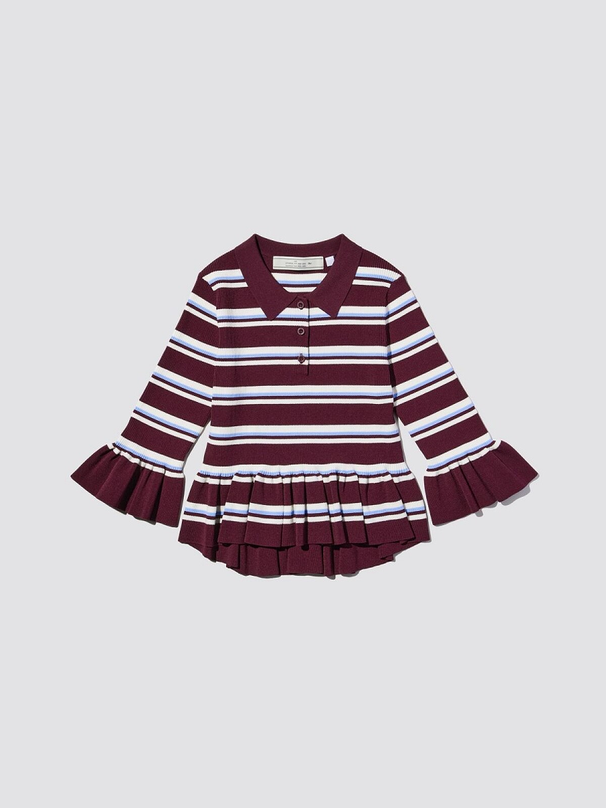 休閒感的Polo針織衫搭配上甜美的荷葉邊設計,瞬間讓簡單的上衣有了不同尋常的可愛風格。