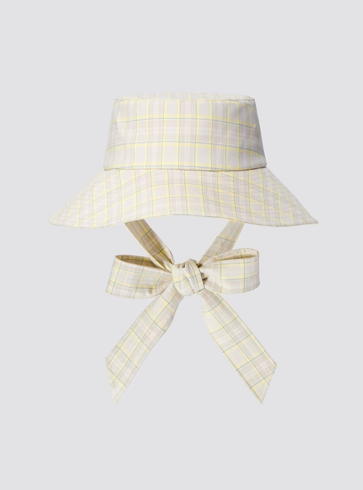 非常有歐式風情的格紋寬簷帽搭配上綁帶的設計,為帽款配戴增添更加多變的造型。