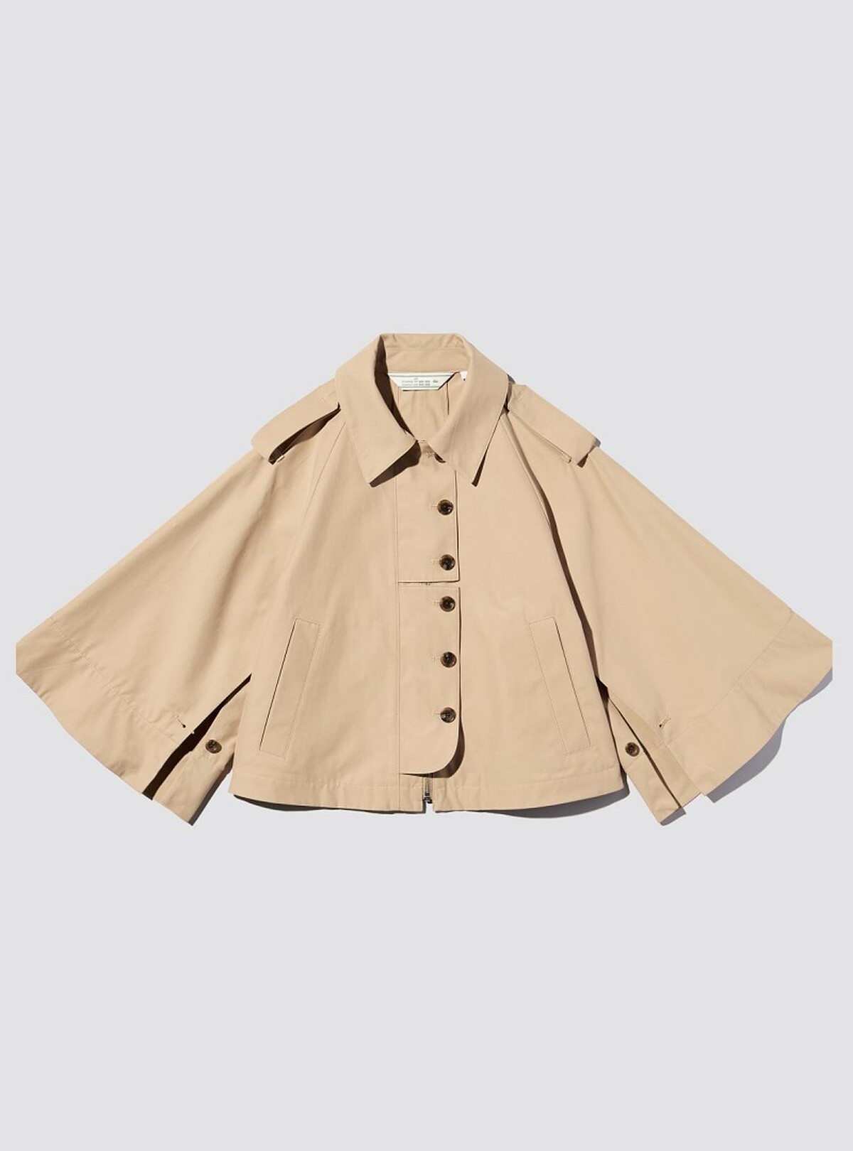 解構感的風衣在首次聯名中就是非常受到注目的單品之一,本次在春夏聯名中改以短版方式呈現,實穿又時髦。