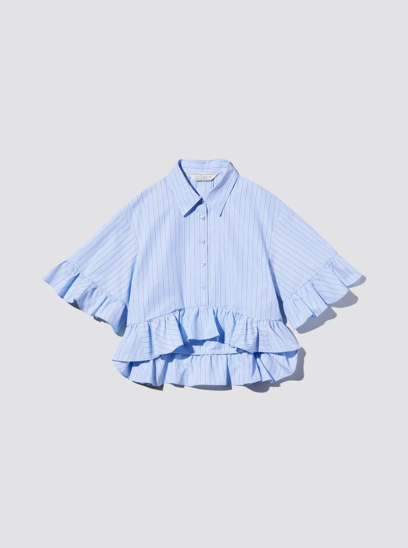 休閒感的Polo針織衫搭配上甜美的荷葉邊設計,瞬間讓簡單的上衣有了不同尋常的可愛風格。