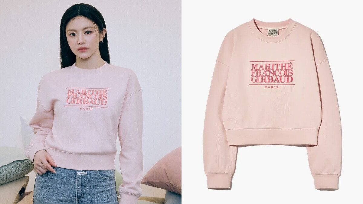 儘管MARITHÉ結合法式愜意和韓系俐落的設計已風靡許久,看到「高允貞同款」還是會忍不住想入手。若你喜歡帶有精神的大學T版型,可以嘗試中短版的設計,寬腰節下襬可以修飾小腹,且下身簡單配上牛仔褲或是甜美的泡泡裙都沒問題,今年春天推出的淺粉色撞深粉色的刺繡更加顯氣色,招桃花必備!