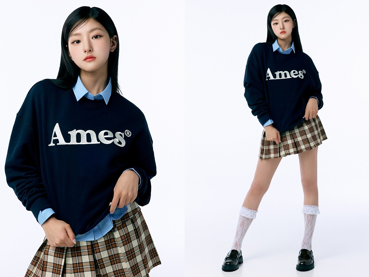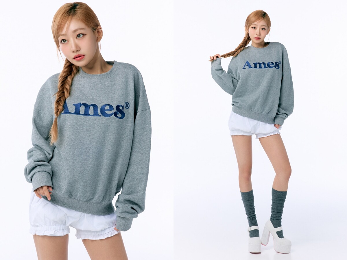 對大LOGO情有獨鍾的話,編輯再推薦來自韓國設計品牌Ames的人氣大學T,找來火辣女團KISS OF LIFE擔任代言人,他們家的版型屬於正常偏寬鬆,袖長的堆積感穿起來更加可愛不呆板,除了內搭襯衫和百褶裙能夠穿出學院風之外,下身配上迷你荷葉邊短褲和跟鞋也能打造「休閒結合甜美叛逆」的混搭風!