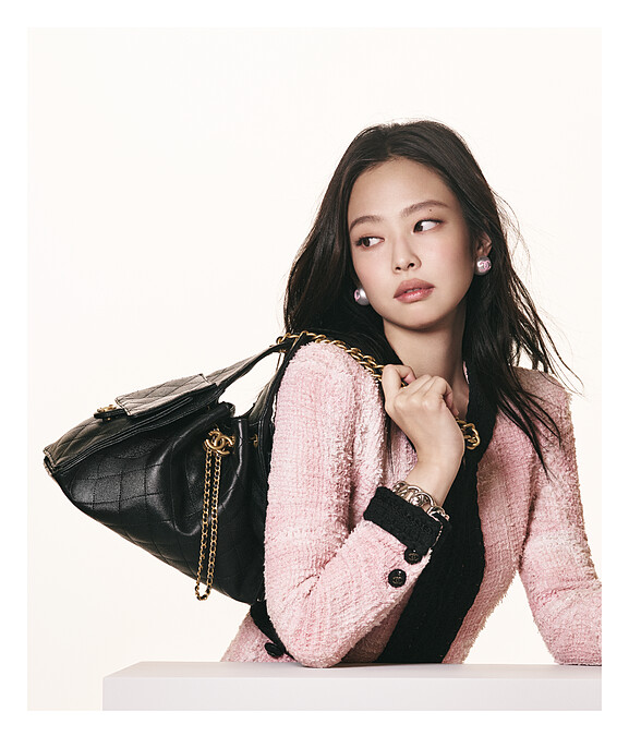 在導演 David Sims 的鏡頭下,Jennie 和這只大容量的包款成為最自在的組合,他時而隨性背起大包行走在街頭,時而優雅手提步入派對場景,無論是私服還是舞台,他總跟著 CHANEL 25 一起發光。