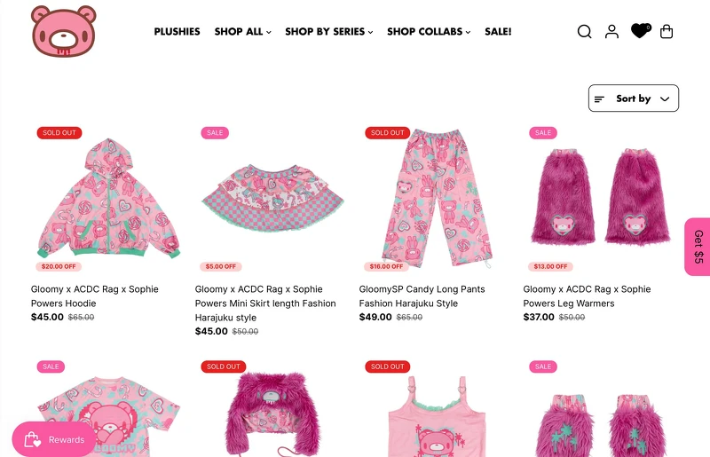 Sophie Powers設計的作品可以在她的個人品牌Gloomy Bear Store中獲得,品牌風格挹注了她熱愛的卡通元素,色彩劇烈、亮眼,囊括襪套、迷你裙……等Y2K女孩必備的單品。如果你也被Sophie給圈粉了的話,不妨一起來挑戰她獨特的穿衣風格!