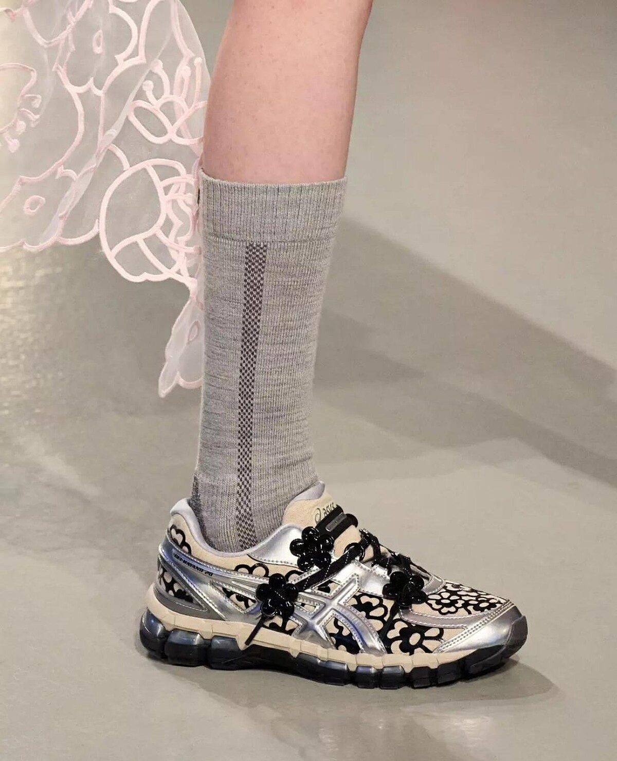ASICS已數度與Cecilie Bahnsen展開合作,當機能跑鞋覆蓋上浪漫花朵,沒想到能碰撞出這麼夢幻的效果,而雙方的最新合作在Cecilie Bahnsen 2025秋冬大秀上亮相,本次採用ASICS GEL-KAYANO 20鞋型延伸,將原本的反光線條設計轉化為花朵圖案,再加入立體小花的裝飾,與前幾次合作一樣,沒打算放過大家的荷包。(上市時間尚未公布)