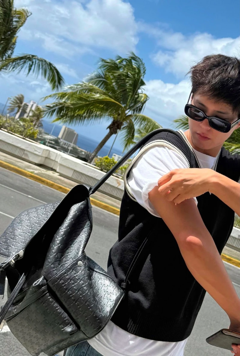 除了私下背上的背包款式,近日朴寶劍也現身首爾仁川國際機場,穿上夏季新品打造簡單有型的機場時尚,上身以黑色俐落的TEDDY皮革夾克為造型主軸,手持印花旅行袋,整體率性又優雅,展現簡單不造作的時髦都市風格。