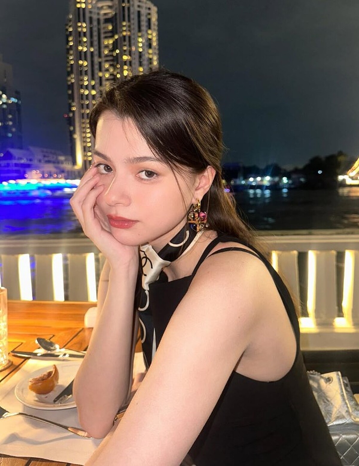 黑色削肩背心展現俐落線條,搭配絲巾輕繞頸間,不僅增添優雅氛圍,還能巧妙提升造型層次感。這樣的搭配既有率性酷感,又帶點法式浪漫,無論日常或正式場合都能輕鬆駕馭。