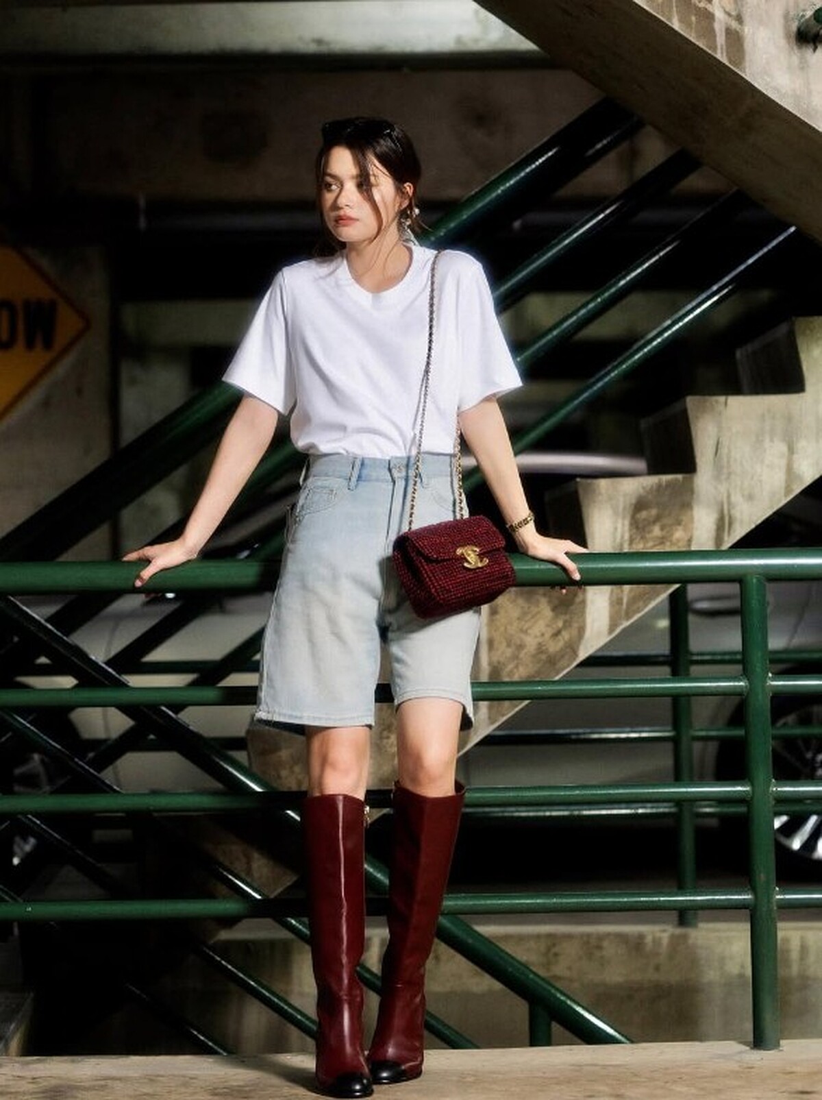 Becky身穿一件剪裁俐落的白色細肩帶背心,搭配淺灰高腰短褲,營造清新又不失個性的青春少女日常風格。這一套穿搭的重點在於乾淨線條與勻稱的造型比例,不僅展現修長的四肢,也突顯出他天生混血立體五官。推薦給喜歡低調卻有設計感的女孩,簡單一件素背心,往往就能搭出清爽的夏日氣質。