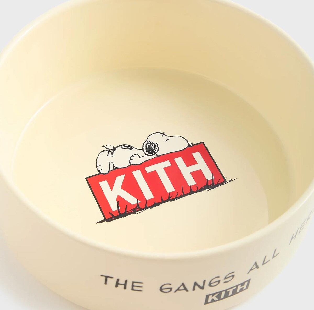 本次聯名也包含了Lifestyle生活小物系列,不同色調的史努比玩偶組合最為搶手,此外,狗狗碗、地毯、抱枕套裝、吊飾、午餐盒……設計也都超可愛!編輯特別喜歡這款地墊,史努比趴在Kith Logo上的模樣既經典又充滿潮流韻味。