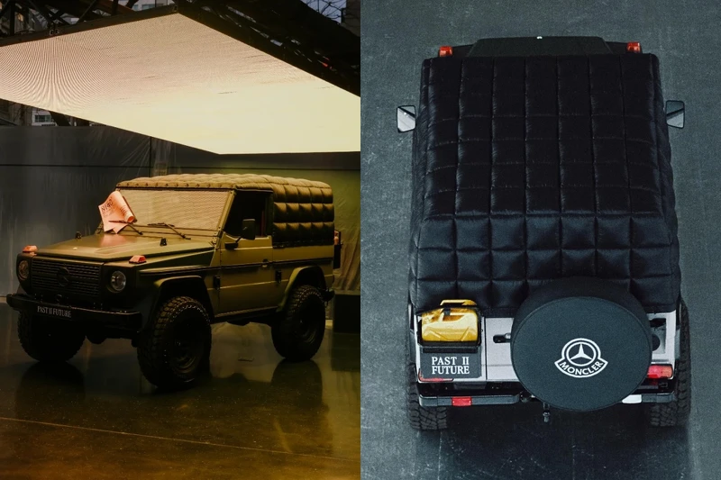 NIGO打造的聯名車款Project G-Class "Past II Future",其實是一場對90年代經典G-Class車款的致敬與重塑,他將復古精神重新解構,融入Moncler代表性羽絨元素,讓整台車彷彿穿上膨脹感十足的羽絨外衣,視覺衝擊力十足,同時,作為一位對 Vintage文化情有獨鍾的潮流大師,NIGO此次選擇以G-Class為載體,也是對過去經典的回望致敬並注入一抹嶄新的時尚靈魂。