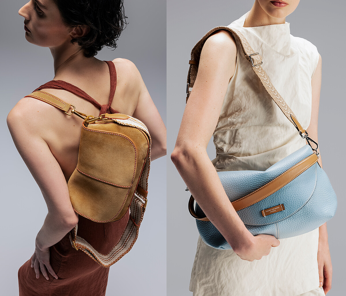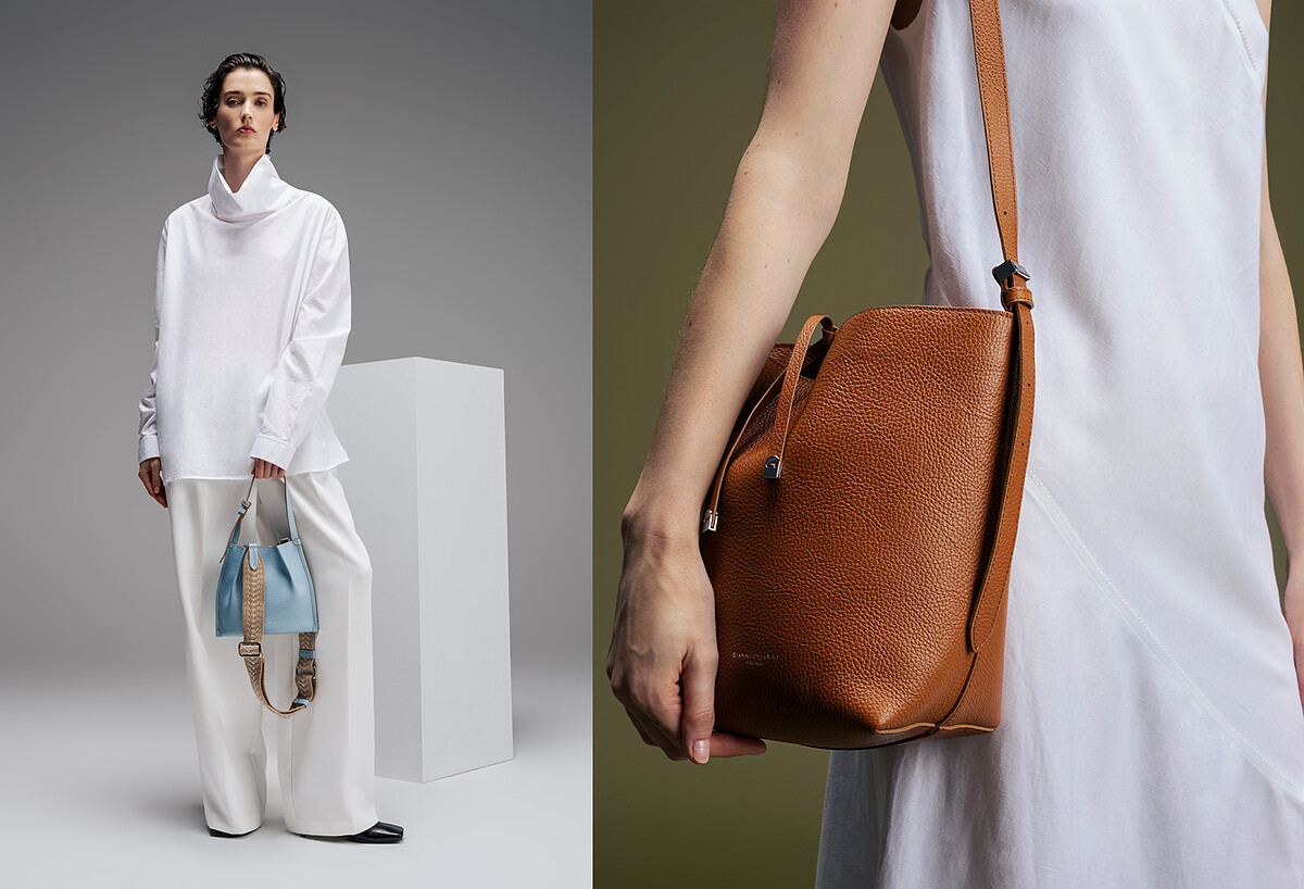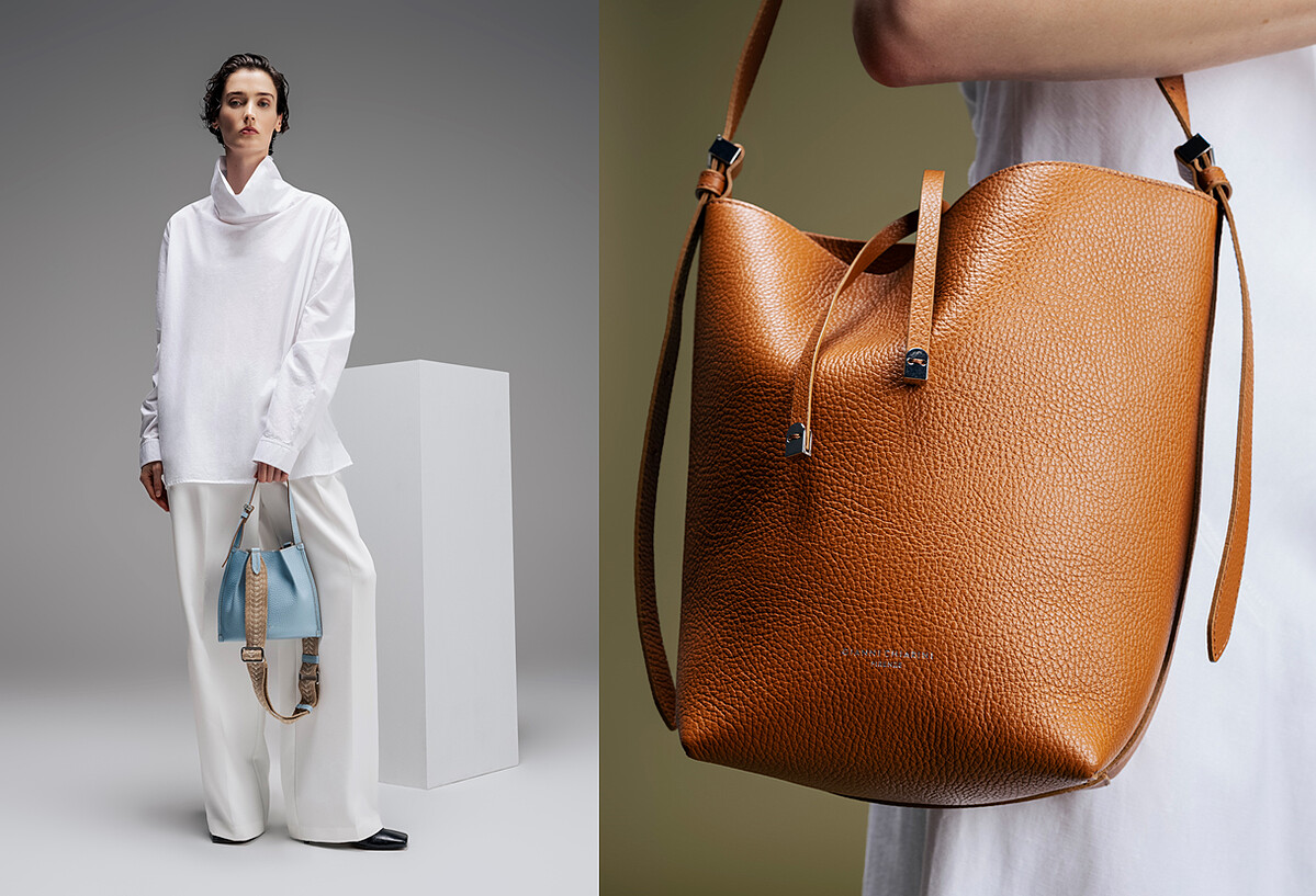 對於追隨潮流趨勢腳步的女性來說,這幾年蔚為風行並持續人氣延燒中的水桶包,也是很適合春夏穿搭造型中背帶的包款選擇,更何況Gianni Chiarini注入新意給予水桶包多種呈現姿態,也讓清新的Dory小型手提包與文藝氣息濃厚Amelia皮革水桶包,成為許多女性春夏美包購物清單上的One Pick!