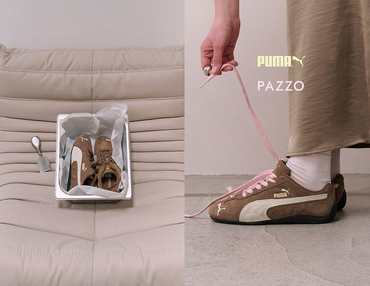 而為了摩卡慕斯鞋款的上市,PUMA也特別找上受到許多女生喜愛的快時尚品牌PAZZO合作,以2025年興起的可麗露Lulicore風格搭配鞋款展現一系列造型,更推出合作活動,4月21日起只要在PAZZO官網單筆消費滿額台幣3500元(含 PUMA SPEEDCAT OG賽車運動鞋)就能獲得搭配的粉紅色鞋帶一份,組合成「草莓摩卡」的風格鞋款。