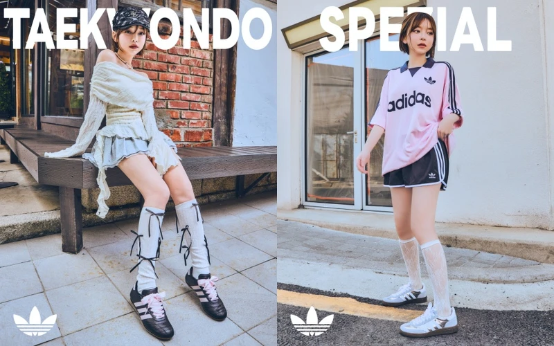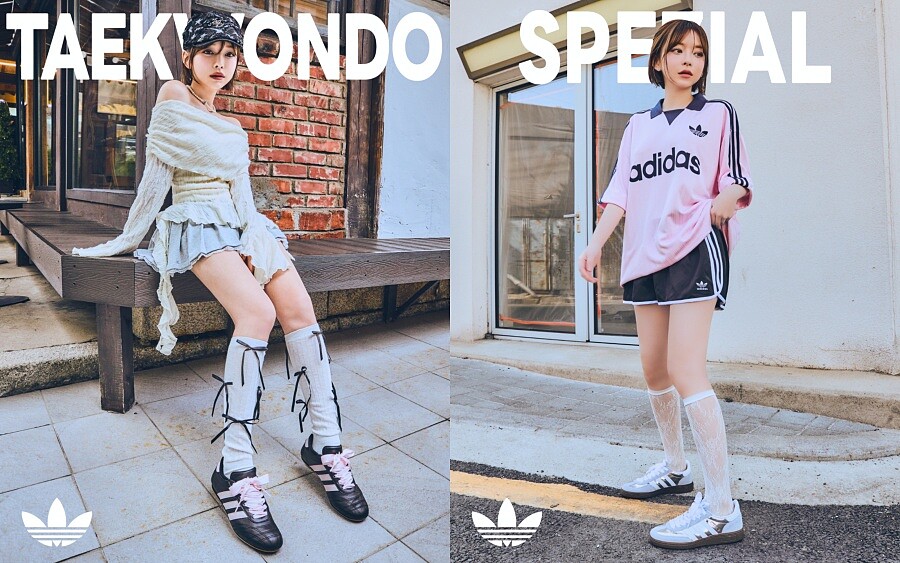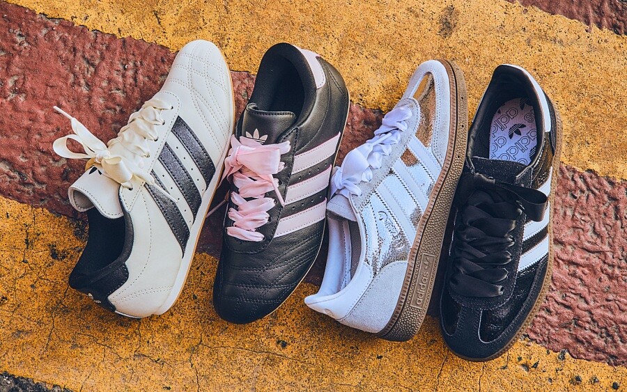 TAEKWONDO LACE輕薄靈巧的鞋身線條,鞋面以絎縫設計結合皮革經典三線標誌,簡約中暗藏精緻細節,隨鞋附上緞帶鞋帶,為整體增添柔美氣息,HANDBALL SPEZIAL鞋款則承襲經典手球鞋的復古基因,裂紋金屬皮革鞋身搭配經典T字鞋頭設計,營造簡約俐落的輪廓感,隨附標緞帶鞋帶可依造型自由切換。