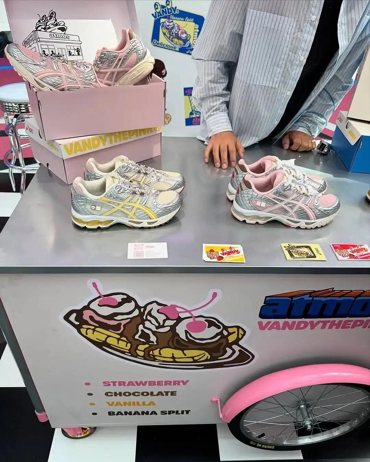 日本知名球鞋選品店atmos今年迎來25週年,日前於東京新宿舉辦atmoscon球鞋盛會,匯聚了許多潮流話題、稀有少見的鞋款,以及各大品牌與atmos的限定合作,其中亞瑟士ASICS與潮流時尚品牌Vandy the Pink為慶祝 atmos 25週年,一起在會場開了一間香蕉船冰淇淋店,並推出「Vandy the Pink x atmos x ASICS」三方聯名系列,直直進攻少女心的粉嫩冰淇淋配色,簡直就是一記甜蜜爆擊!