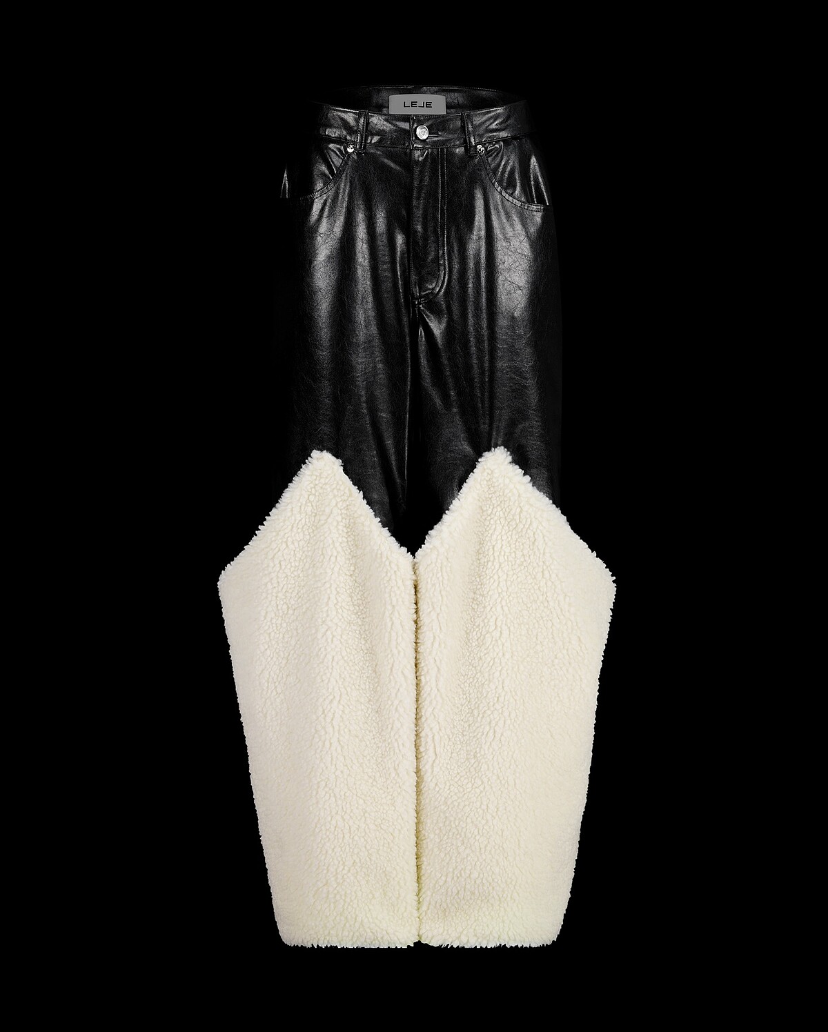 Jennie下身則穿著來自 LEJE的CONE褲裝系列,靈感源自韓國傳統髮帶(댕기,daenggi),以流動感十足的錐形線條為特色,並透過羊毛材質的拼接設計,為俐落的廓型注入一絲俏皮張力,展現出傳統與現代並存的時尚語言。