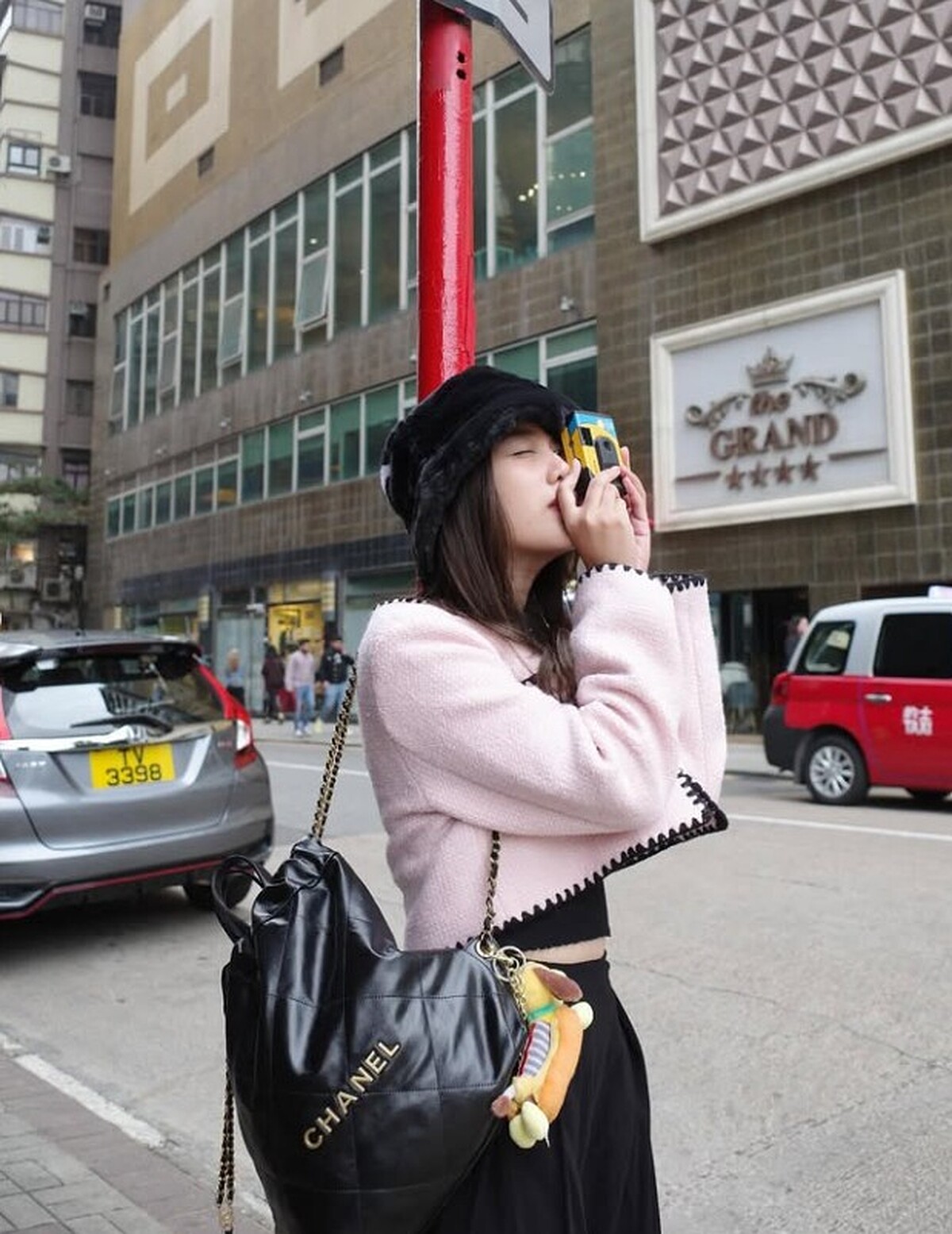 Freen出遊選擇CHANEL 22雙肩包,經典的黑金配色,不只耐看還百搭,更能輕鬆搭配各種造型。雙肩設計能有效解放雙手,讓出行更加輕鬆自在。容量方面也十分寬敞,日常必備物品都能輕鬆收納,讓你無需煩惱,隨時準備出發。