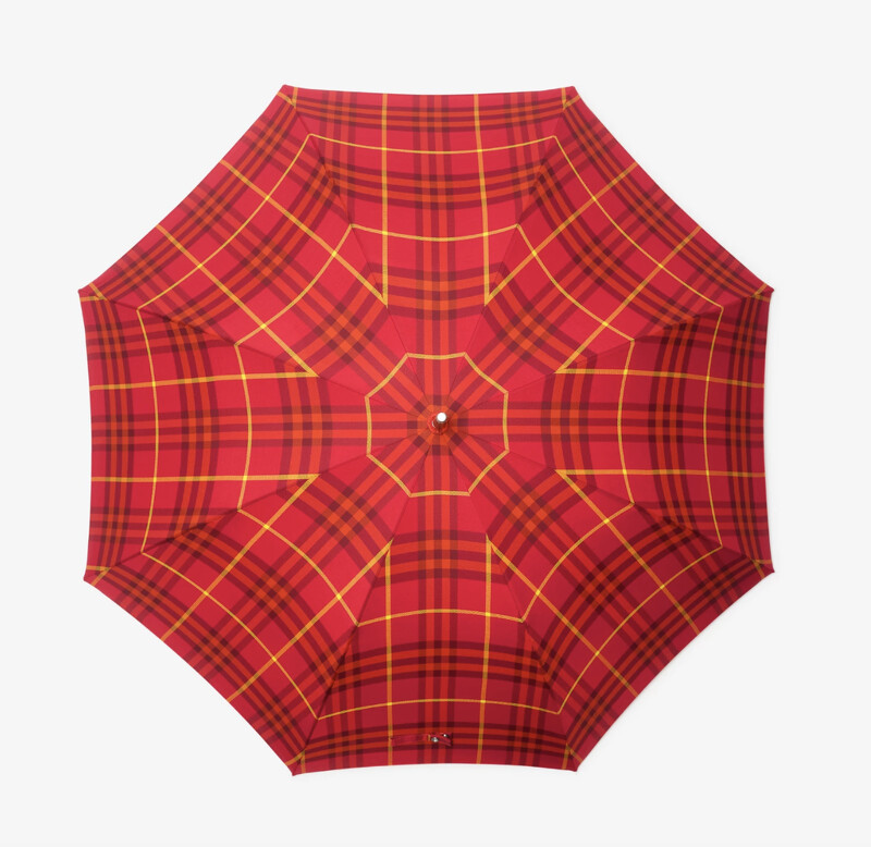 Burberry 格紋尼龍棉質雨傘,長柄雨傘採用尼龍與棉質混紡材質打造,經義大利工坊精緻製作,傘面飾以本季全新色調演繹的 Burberry 經典格紋。楓木手柄搭配金屬尖頭設計,為整體增添質感與耐用性。