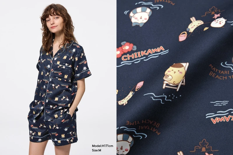 如果穿著吉伊卡哇的外出服讓你感到害羞,那麼在家就可以放心的穿上吉伊卡哇睡衣!且夏天的居家服就該換上這款絲滑冰涼的緞面材質,所有吉伊卡哇都在上頭愜意玩耍,有的在沙灘邊喝椰子汁、水裡游泳、還有人在堆沙堡、唱歌跳舞……看著滿版的吉伊卡哇特別療癒呢!