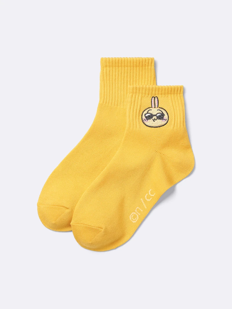 襪子總共帶來吉伊卡哇、小八、兔兔、風獅爺、栗子饅頭共5種顏色,腳踝處有細緻的刺繡,同樣若對於穿在身上感到彆扭的人,不妨把熱愛吉伊卡哇的小心思放在雙腳上吧。