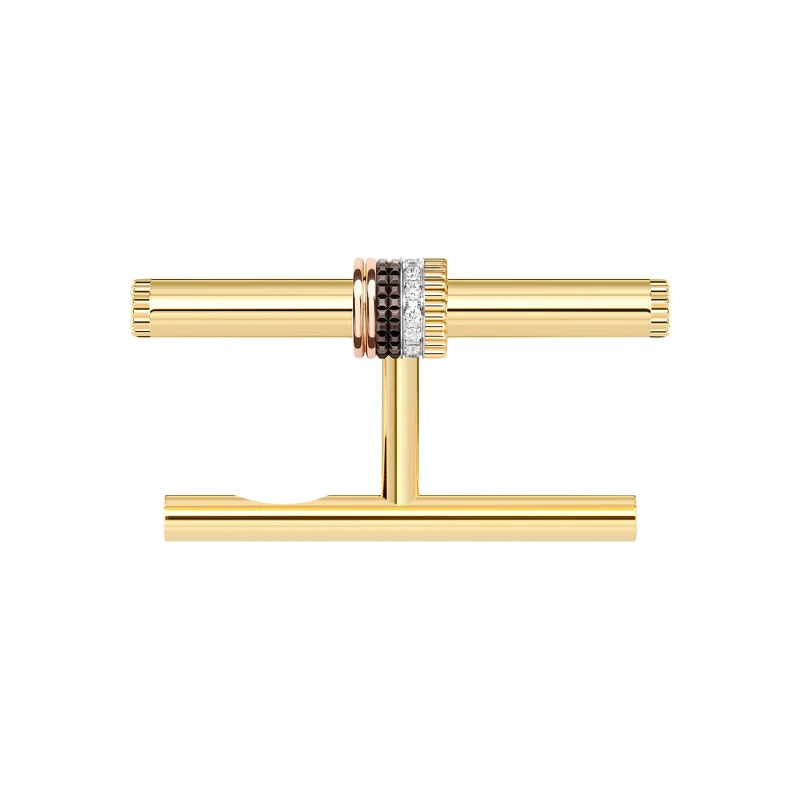 Quatre Classique系列Tube雙指戒 黃金、白金和玫瑰金750材質、棕色PVD 鑲嵌鑽石