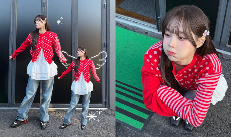 不管走到哪裡,總能看到skirt over pants的穿搭備受許多藝人或時尚名人喜愛,這種褲子搭配短裙的多層次穿搭將平平無奇的牛仔褲穿出甜美可愛的感覺。而CHUU的利用復古的紅色波點外套配上黑色球鞋,平衡蛋糕裙的少女感,甜的恰到好處,想要嘗試大人感的可愛不妨將紅色元素注入穿搭單品中吧。