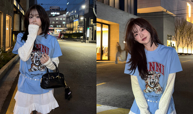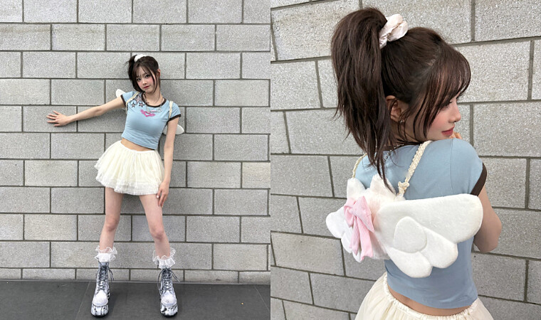 迷你蛋糕裙上鏡顯腿長又自帶氛圍感,是許多藝人不論是舞台造型或是私下都很喜歡的單品之一。CHUU的上衣選擇了合身的T恤,相較於寬鬆上衣更能凸顯身材,在不經意間展現小辣的心機,而洗舊的厚底鞋替整體造型注入個性與時髦態度,詮釋在浮誇的造型中如何呈現一定的質感。