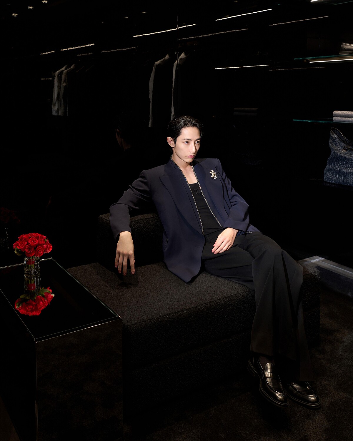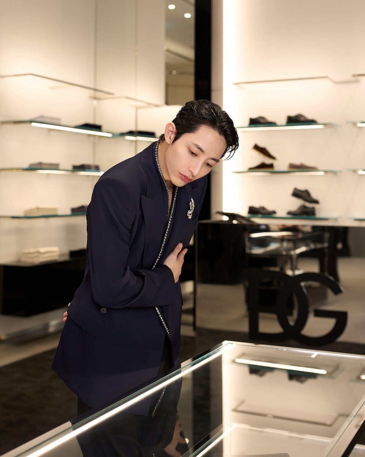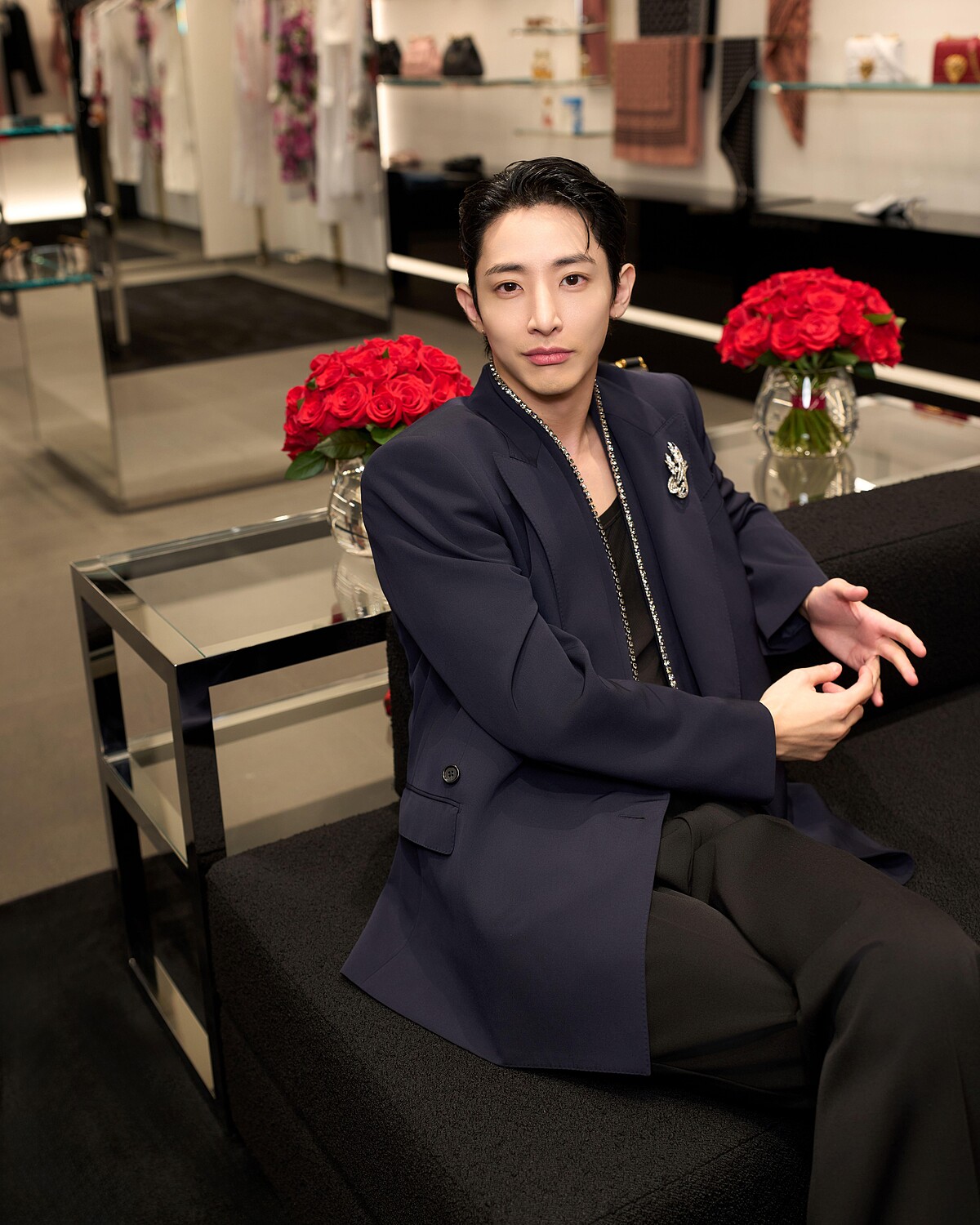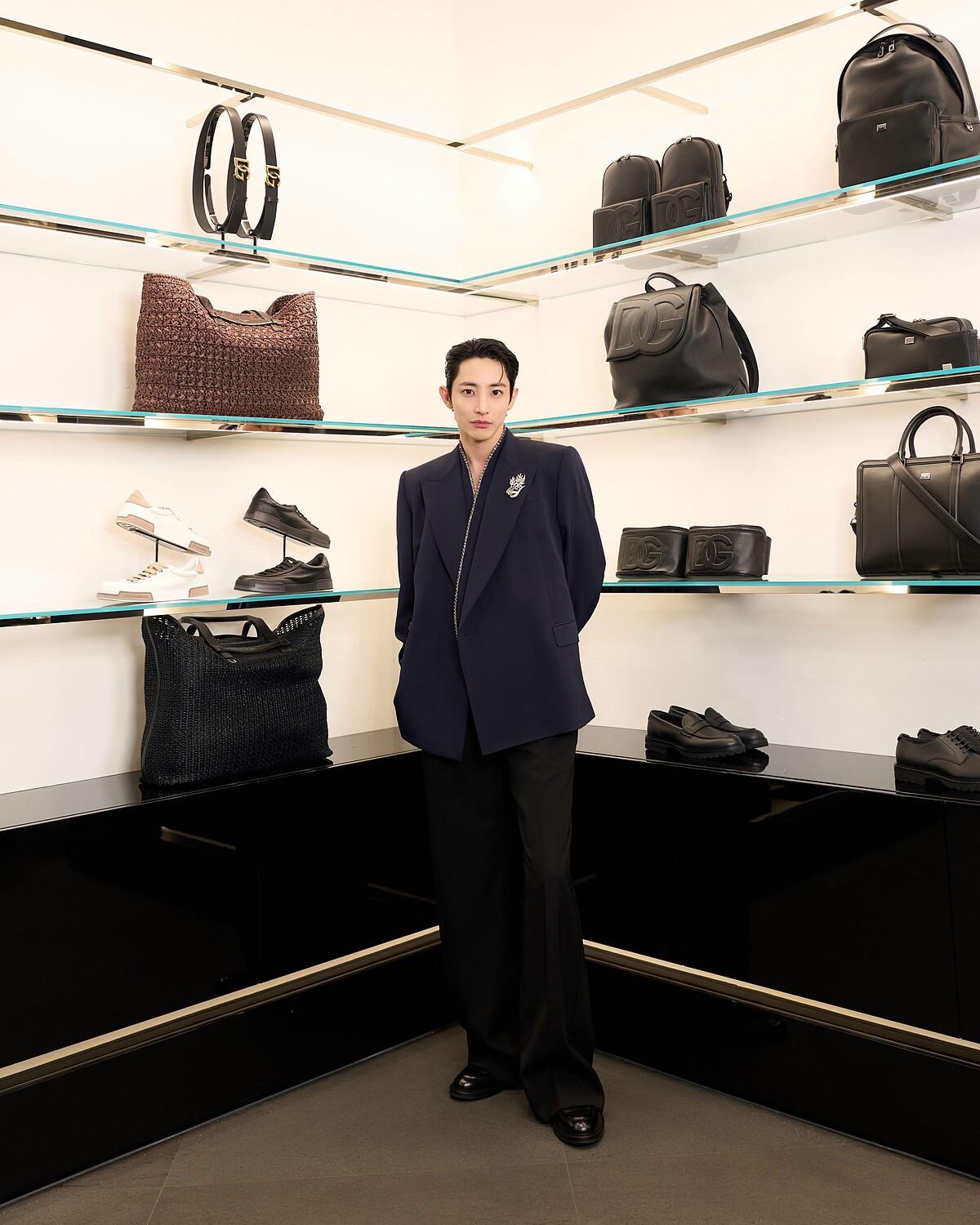Dolce&Gabbana全新旗艦店開幕,為表現品牌與「西西里黑」的淵源與熱愛,店裝外牆與室內地板採用的是義大利空運來台的黑色 Basaltina火山岩石,搭配上極簡現代風的金屬陳列架,與象徵性感的紅玫瑰點綴空間。李洙赫當然也逛遍了各個角落,並留下帥氣的身影,這幾張高清照粉絲們必須收藏!