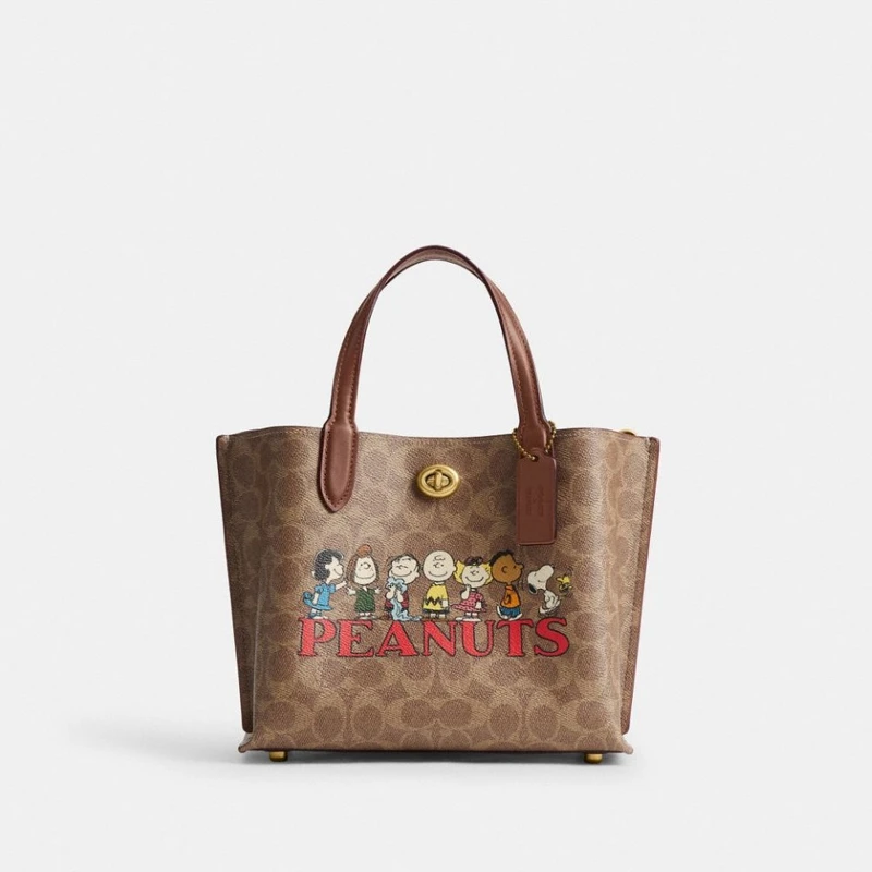 在Willow系列手袋上則能看見所有經典角色們,以彩色的模樣出現,搭配上Coach老花為背景,為原先身為基本入門款的手袋們,注入活潑的童趣感,包上還有自帶史努比狗屋的掛飾!