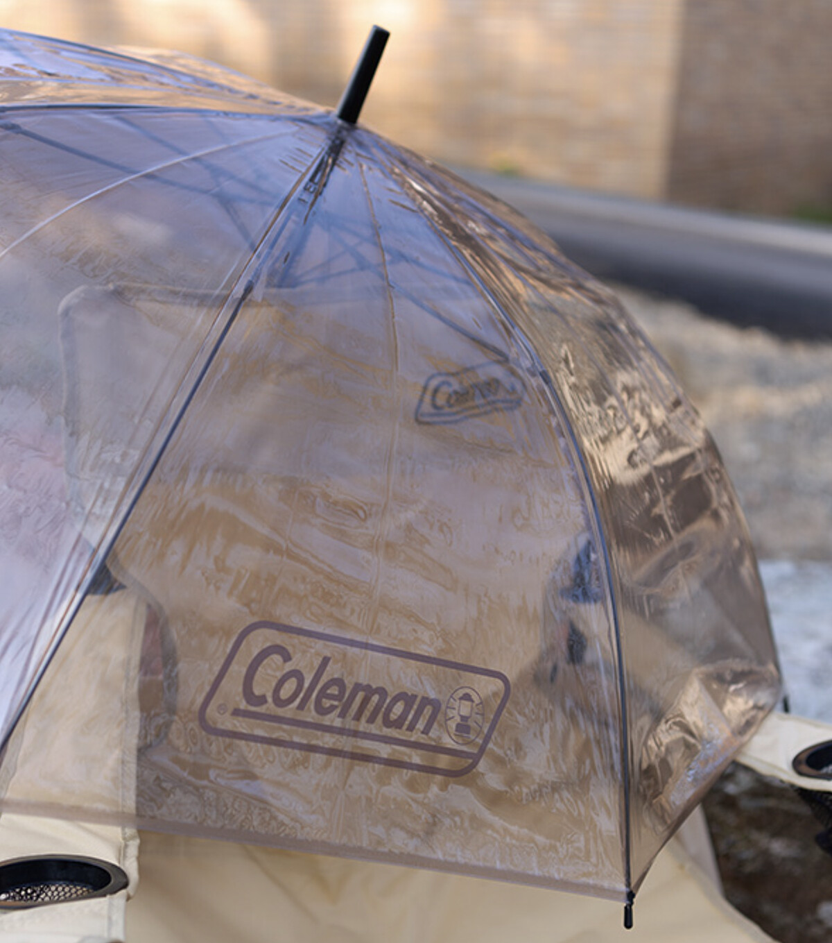 另一款抗風透明長傘則顛覆傳統透明傘的印象。外觀上雖與一般便利商店的透明雨傘相似,但其內在設計可是大有玄機!Coleman選用了玻璃纖維材質打造骨架,比一般塑料骨架更輕盈、更耐用,專為抵抗強風而設計。傘面採用淡煙咖啡色調,加上Coleman Logo點綴,提升質感,兼具日式極簡與戶外風格的結合,非常適合購入。