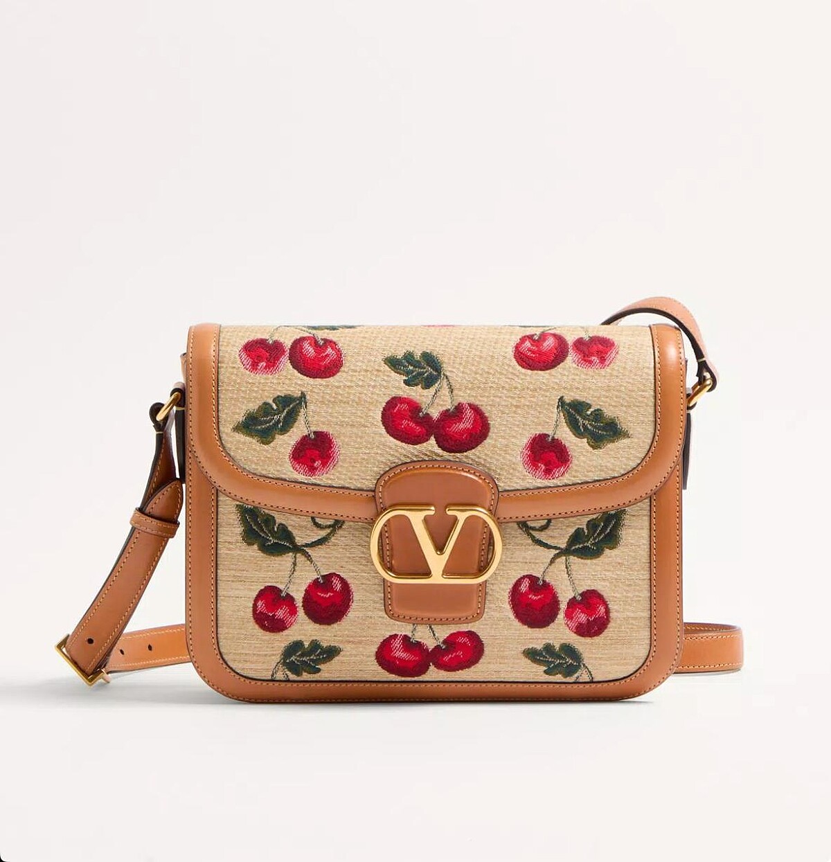 近期出鏡率最高的非這顆「櫻桃包」莫屬,蔡依林不僅在活動上搭配了一組洋娃娃般的櫻桃華服套裝,也在私下拎著櫻桃包走遍巴黎,搭配休閒的丹寧褲裝依然亮眼時髦,夏季氛圍的拉菲草材質上頭排滿飽滿多汁的櫻桃刺繡,看來是女神目前私心最愛的一款。