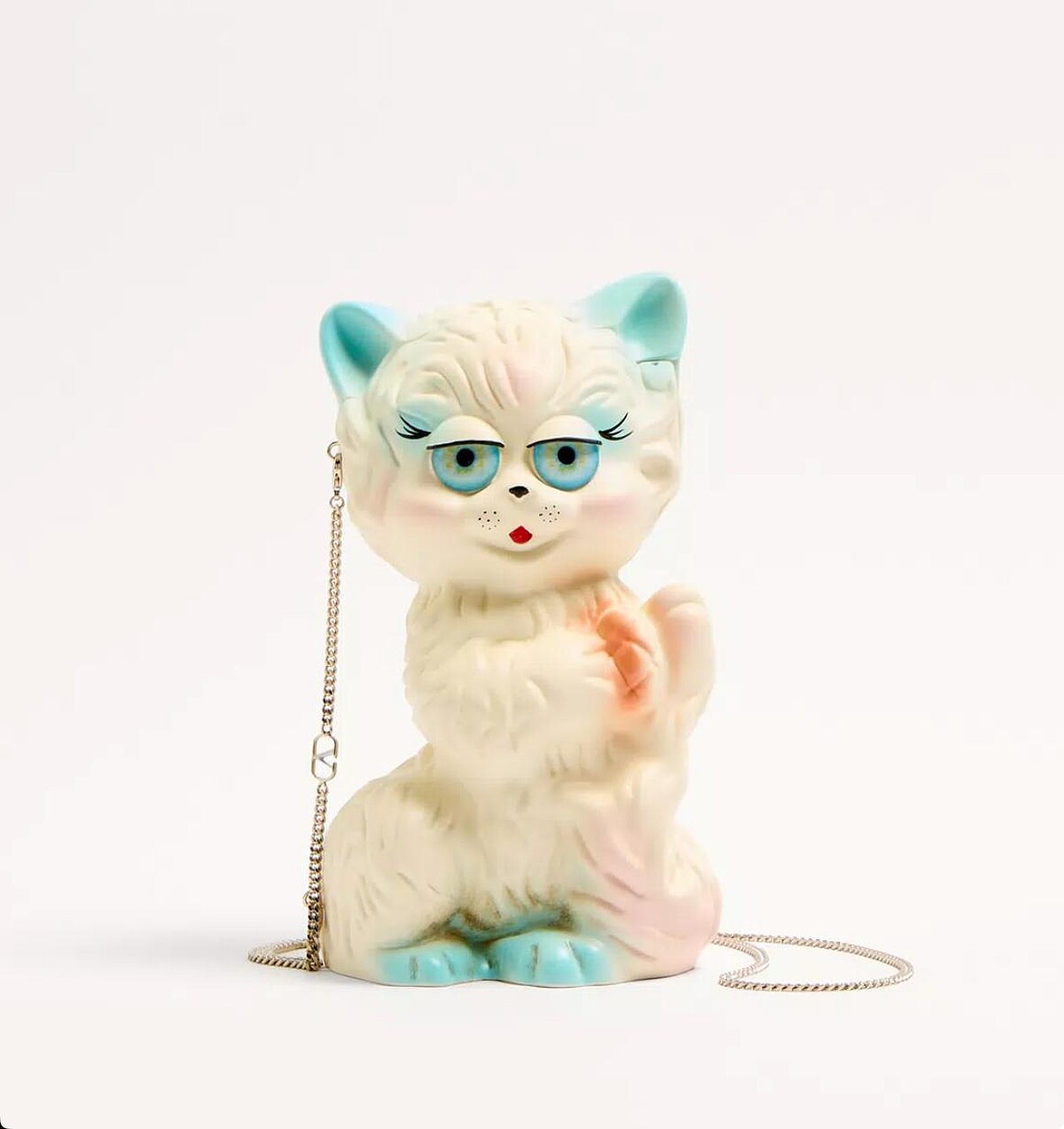 蔡依林在出席時裝秀時,以古典俏麗的橘色褲襪造型,搭配了這只「貓咪包」,特別適合她古靈精怪的個性,許多粉絲都專程為了她跑到門市親眼看看這款貓咪包,精緻的細節令人驚艷,不捨得拿來背也有網友拿來當作「招財貓」擺件!