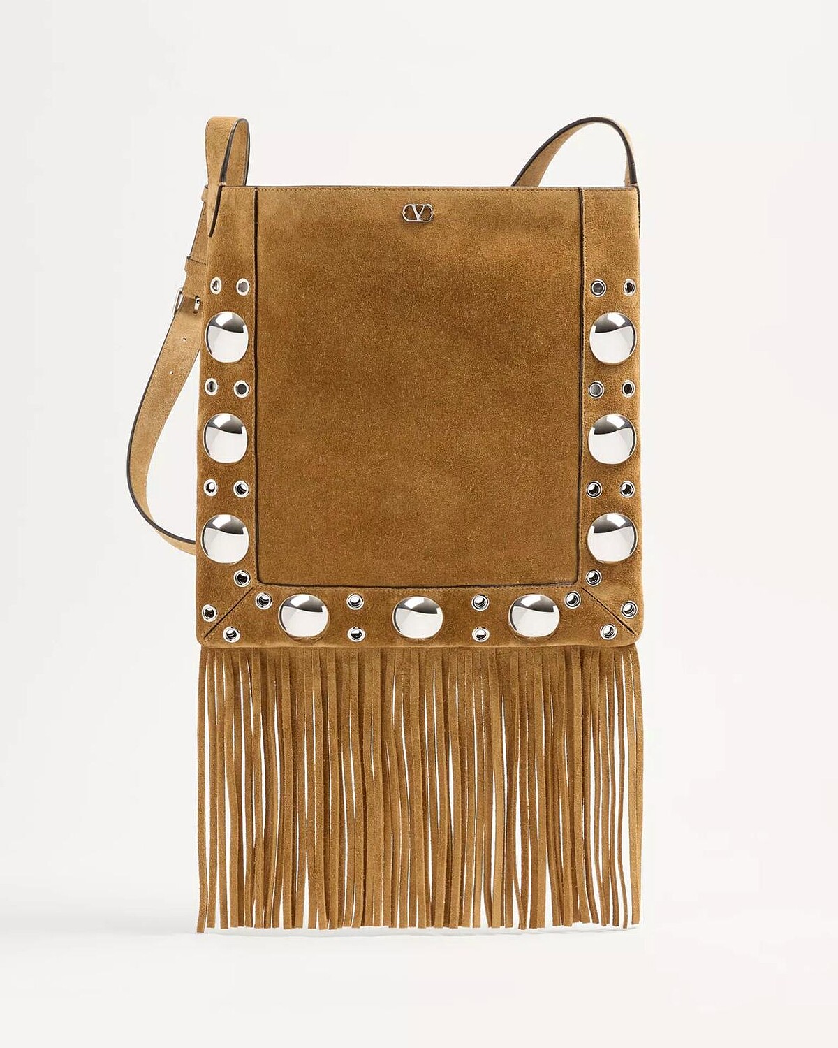 Valentino Garavani Nellcôte麂皮流蘇肩背包