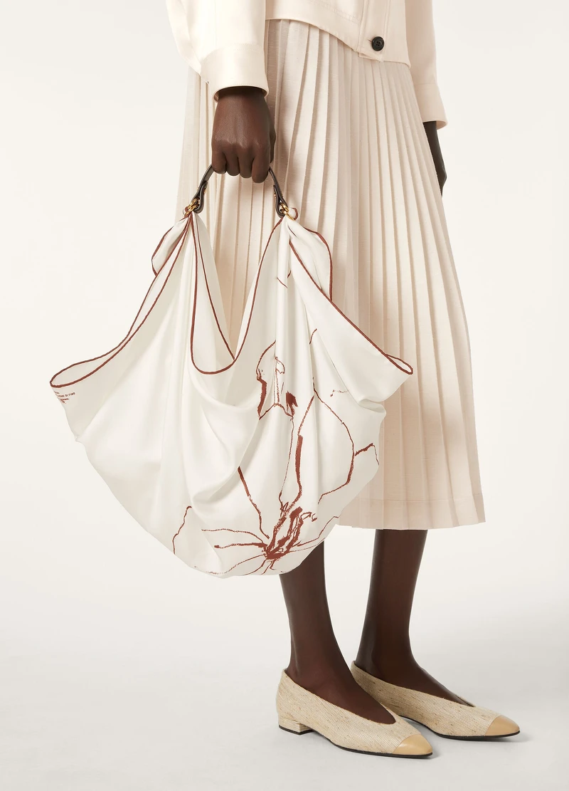 2025春夏藏在Loro Piana配件區的「Foulard Handle」,顧名思義就是「絲巾手提把」,循著Loro Piana的低調極簡美學,這款絲巾手提把上幾乎找不到Logo,品牌識別僅藏在LP字樣的金屬鉚釘上,而皮質則是上乘的小牛皮。