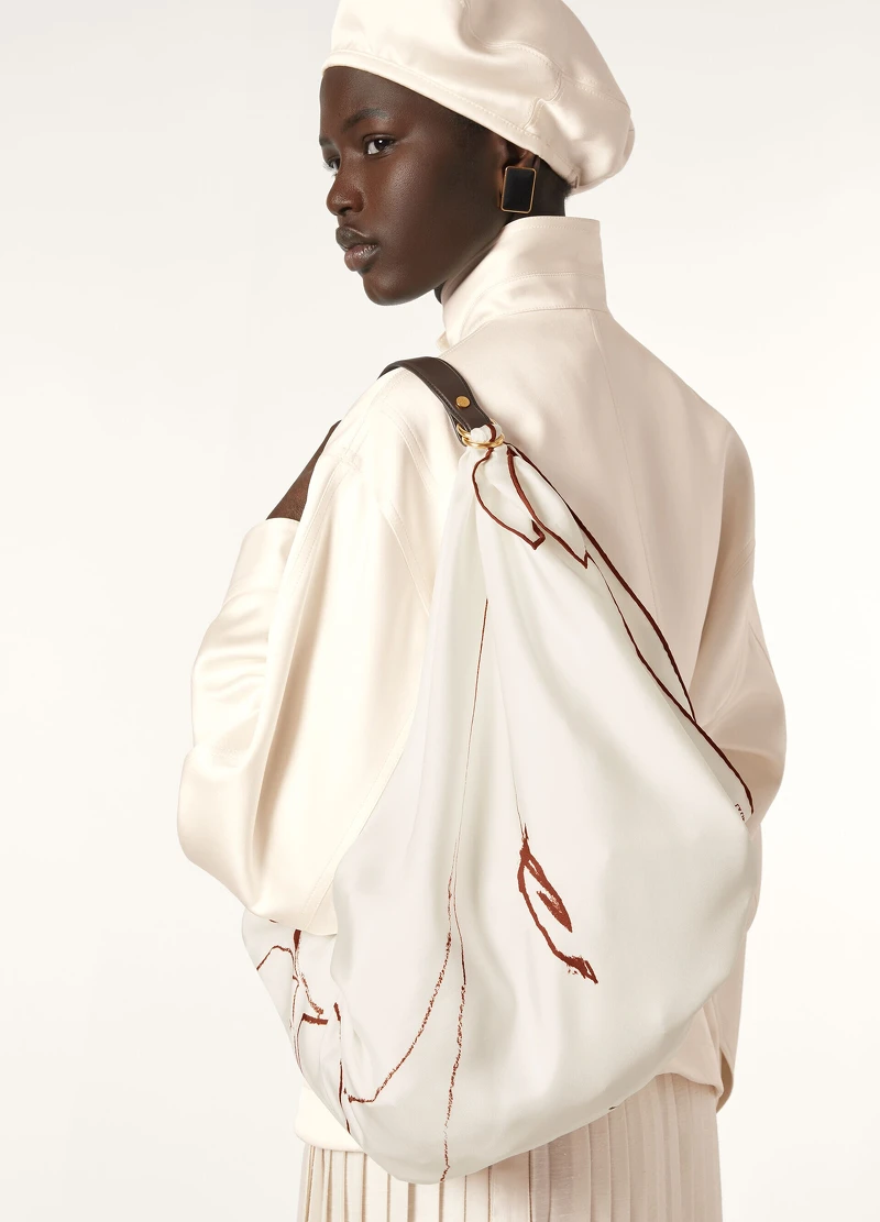 「絲巾手提把」可以隨心的將任何絲巾變成「絲巾包」,當然,也不一定要是Loro Piana的,任何你手邊的絲巾都可以搭配!小牛皮肩帶採用的是雙環設計,固定絲巾的方法非常簡單好上手,官網亦有提供3D影片教學,可以輕鬆將心愛的絲巾、圍巾化身為優雅的單肩包,使絲巾擁有了更豐富的生命!