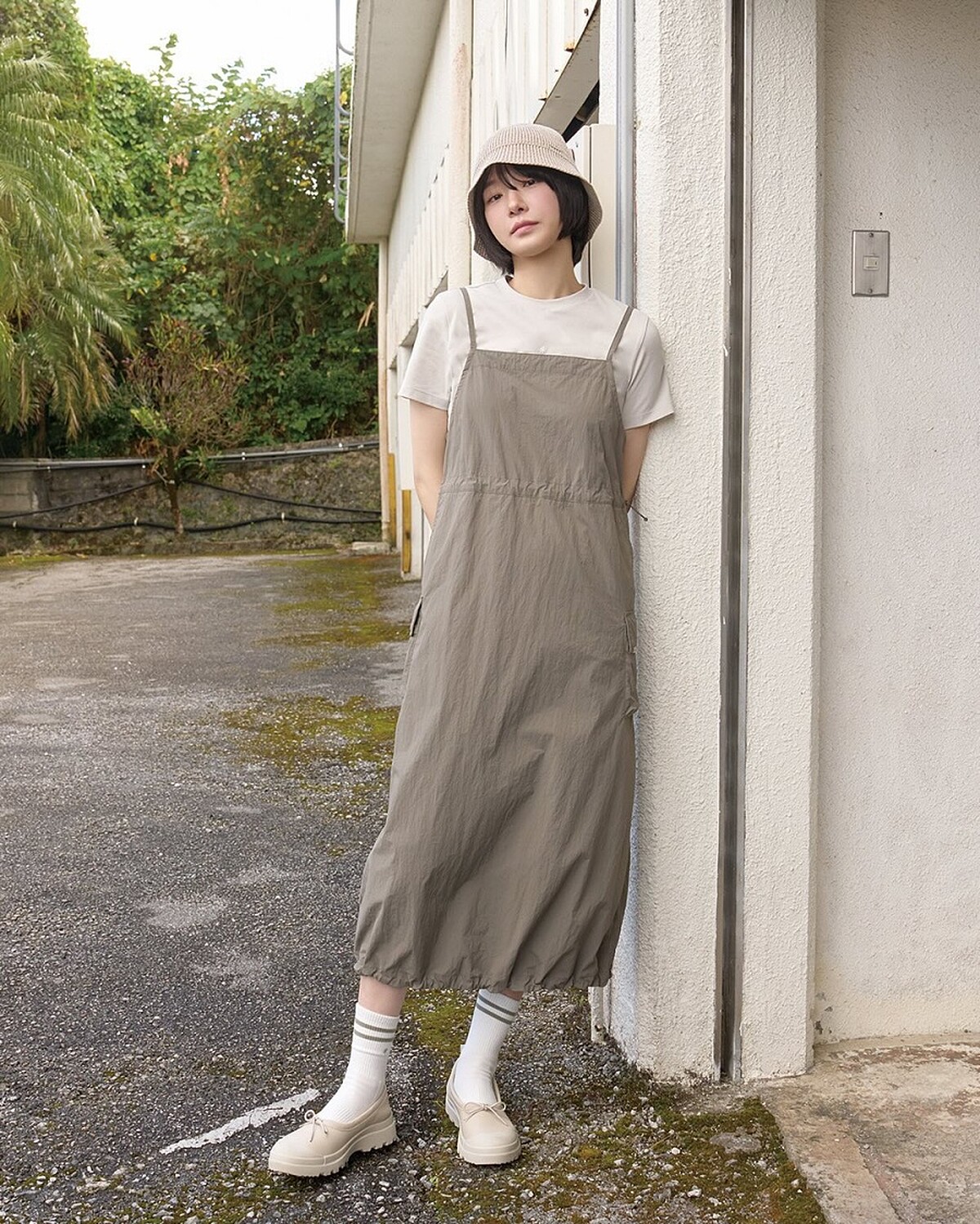 朴圭瑛在夏季形象中演繹輕盈連身裙的造型搭配上夏季針織帽,剪裁俐落且充滿生活感,顏色百搭不失風格。